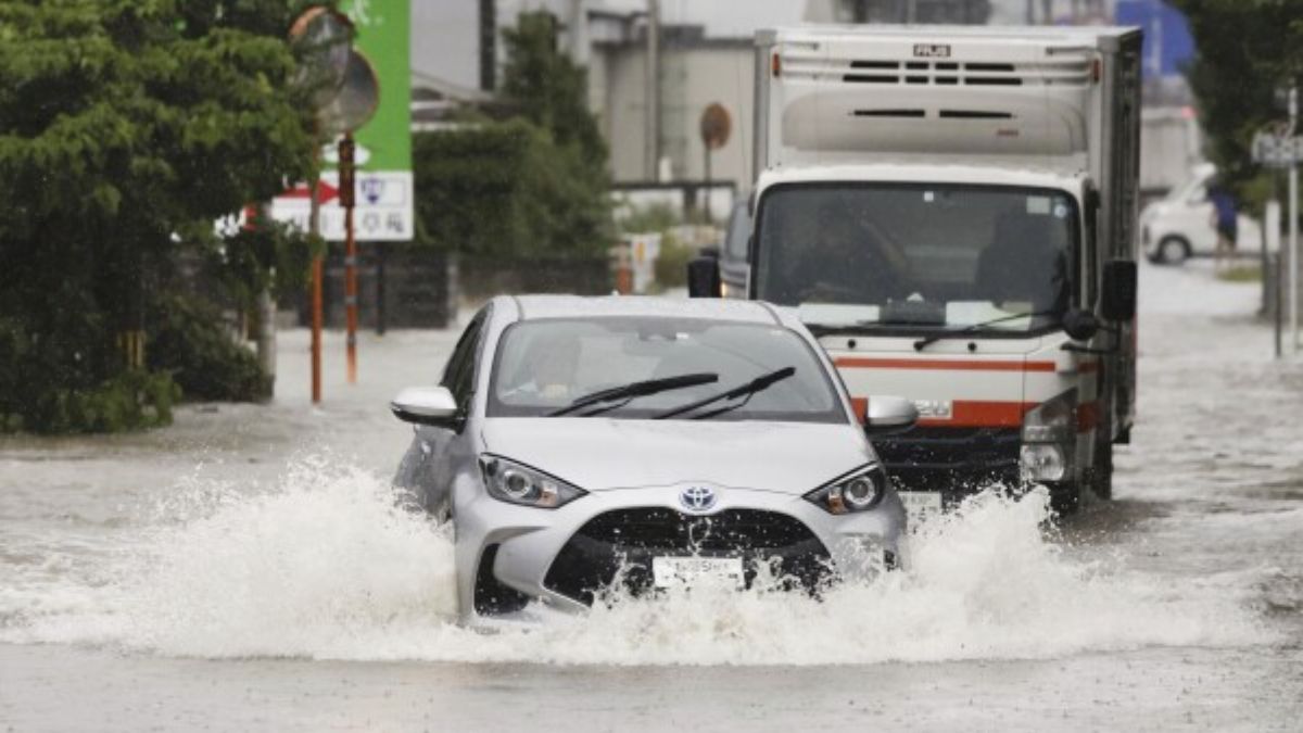 जापान में भारी बारिश का एक दृश्य।