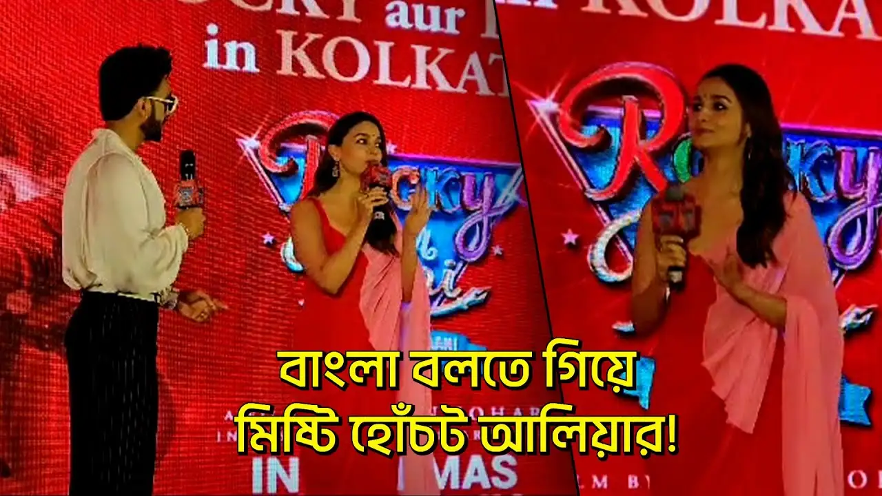 Alia Bhatt New Movie : ২৮ জুলাই মুক্তি পেতে চলেছে করণ জোহরের ছবি রকি অউর রানি কী প্রেম কাহানি। সাত বছর পর এই সিনেমার হাত ধরে আবার পরিচালনায় এলেন করণ জোহার। কলকাতায় রকি অউর রানি কি প্রেম কাহানি সিনেমা প্রমোশনে এলেন আলিয়া-রণবীর। এদিন জিতে নিলেন আলিয়া ভাট ও রণবীর কাপুর। শুরু করলেন বাংলায় কথা বলতে। আর বাংলা বলতে গিয়ে একটু ভুল হয়ে গেল। বাট… একটু ভুল তো হতেই পারে… মিষ্টি হাসি দিয়ে বাকিটা ম্যানেজ হয়েই যায়। দেখুন সেই ভিডিয়ো।
