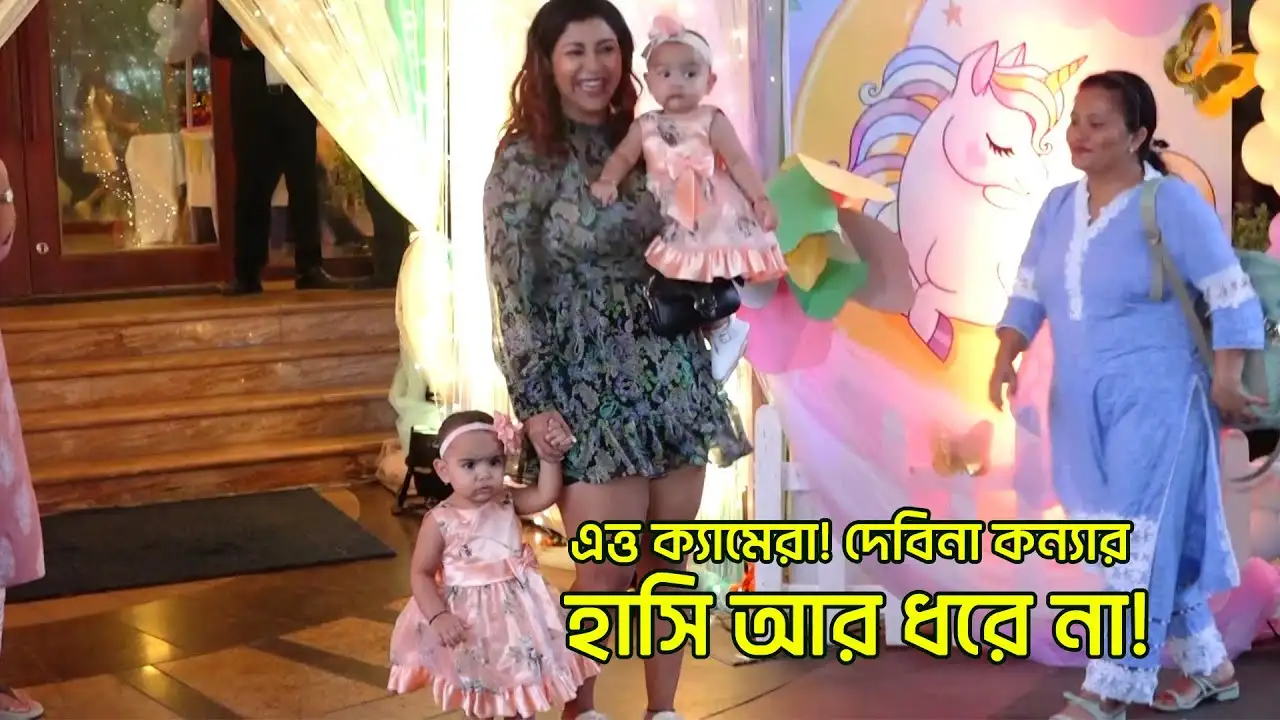 Debina Bonnerjee Video : এত্ত ক্যামেরা! দেবিনা কন্যার হাসি আর ধরে না! – actress debina bonnerjee spotted with her two child at birthday party watch video