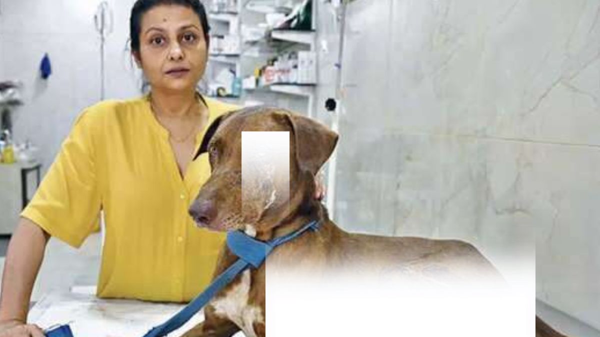 ब्राउनी को टीवी एक्ट्रेस जया भट्टाचार्य और उनकी टीम ने बचाया। (जख्मों को ब्लर किया गया है)