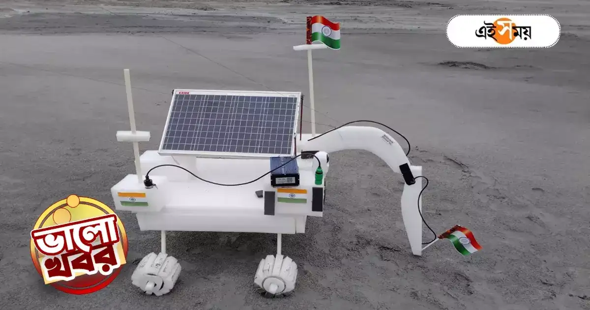 বিষয়টা ঠিক বুঝলেন না তো? তাহলে একটু খোলসা করেই বলা যাক। চন্দ্রযান ৩-এর সাফল্যে রোভার প্রজ্ঞানের রেপ্লিকা বানিয়ে ফেললেন দুর্গাপুরের গোপাল মাঠ এলাকার বাসিন্দা ছোটন মনু ঘোষ ওরফে মনু। শুক্রবার বিকেলে আনুষ্ঠানিকভাবে প্রথমবার এই রোভার প্রজ্ঞান রেপ্লিকার যাত্রা শুরু হয়, যা দেখতে ভিড় জমিয়েছিল সাধারণ মানুষ।