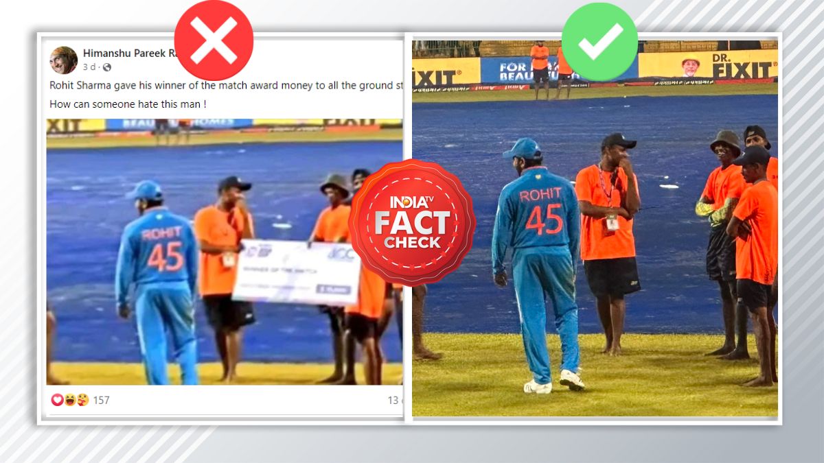 India TV Fact Check: भारत में क्रिकेट को लेकर लोगों में हद से ज्यादा जुनून है। लिहाज क्रिकेट में घटी हर एक छोटी घटना लोगों के लिए बड़ी खबर बन जाती है। क्रिकेट से जुड़ी ऐसी ही एक घटना को लेकर सोशल मीडिया पर एक फोटो तेजी से वायरल हो रहा है। इस फोटो के साथ दावा किया जा रहा है कि रोहित शर्मा ने श्रीलंका स्टेडियम के ग्राउंड स्टाफ को एक करोड़ रुपए दिए हैं। एशिया कप 2023 के सुपर फोर राउंड में पाकिस्तान के खिलाफ भारत की जीत के बाद, ग्राउंड स्टाफ के साथ भारतीय कप्तान रोहित शर्मा की ये तस्वीर सोशल मीडिया पर वायरल होने लगी। इस फोटो का जब इंडिया टीवी ने फैक्ट चेक किया तो ये पूरी तरह से फर्जी निकली।