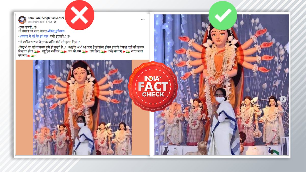 india tv fact check Mamta Banerjee did not order to remove weapons from the idol of Durga Maa old photo। Fact Check: ममता बनर्जी ने नहीं हटवाए दुर्गा मां की मूर्ति से शस्त्र, तस्वीर का दावा निकला झूठा