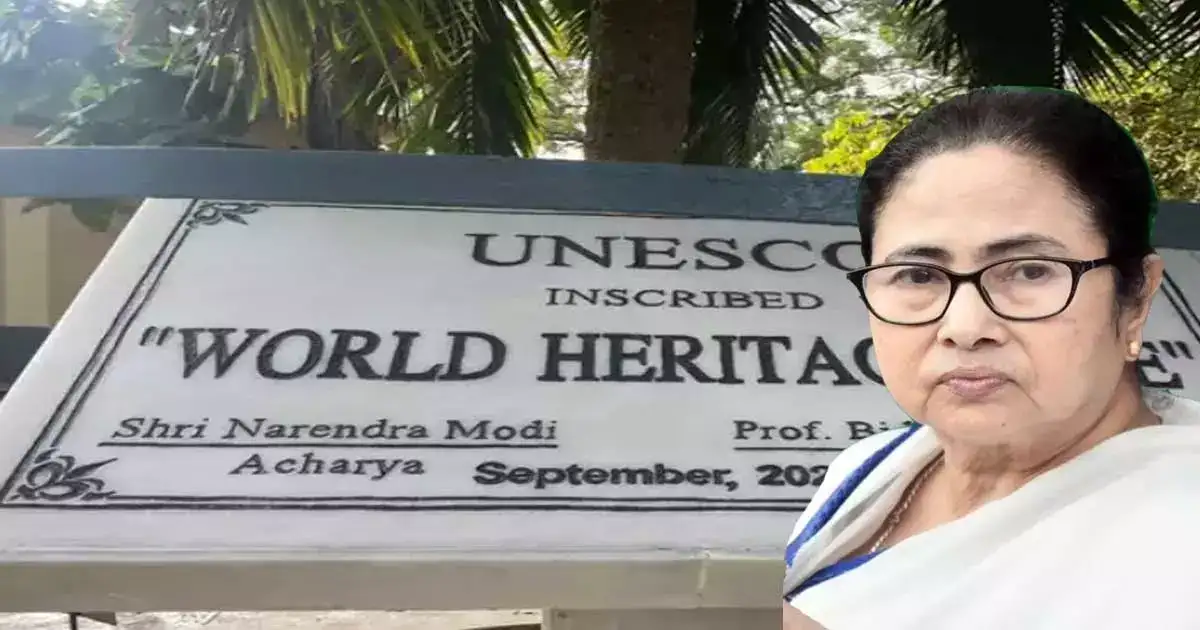 প্রসঙ্গত, গত ১৭ সেপ্টেম্বর ইউনেস্কো-র স্বীকৃতি পায় শান্তিনিকেতন। এরপর রবীন্দ্রভবন, উপাসনা গৃহ, গৌরপ্রাঙ্গণ ইত্যাদি জায়গায় শ্বেতপাথরের ফলক বসানোর ব্যবস্থা করা হয় বিশ্বভারতীর তরফে। স্বীকৃতির উদযাপনের জন্যেই এই ফলক লাগানোর ব্যবস্থা করা হয়। কিন্তু, ফলক লাগানোর পর দেখা যায় সেগুলিতে ‘ইউনেস্কোর ওয়ার্ল্ড হেরিটেজ সাইট’ লেখার নীচে নাম রয়েছে আচার্য তথা প্রধানমন্ত্রী নরেন্দ্র মোদী এবং উপাচার্য বিদ্যুৎ চক্রবর্তীর। এই বিষয়টি নিয়ে আপত্তি তোলেন মুখ্যমন্ত্রী। তাঁর কথায়, যিনি শান্তিনিকেতনের রূপকার তাঁর নামটাই থাকল না ফলকে।