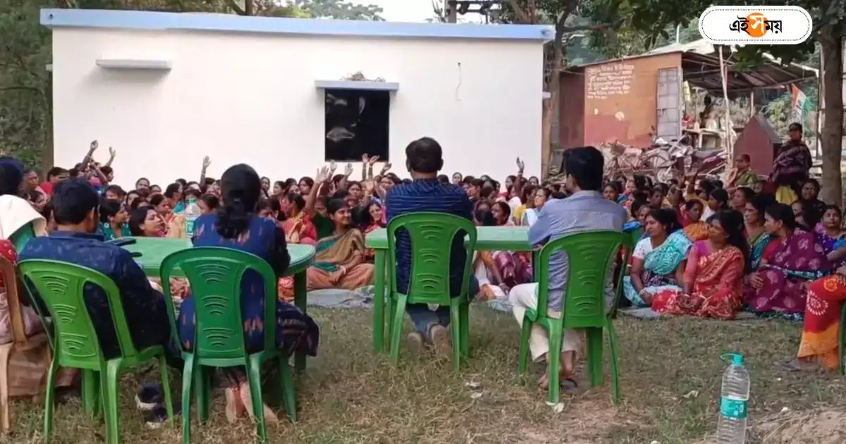 স্কুলের প্রধান শিক্ষিকা ঋতুপর্ণা ঘোষ বলেন, ‘এখানে স্কুলের ১০৪ জন পড়ুয়া রয়েছে। তাঁরা টিফিন টাইমে ক্লাসরুম বসে মিড ডে মিল খায়। তাই স্কুলের সামনের জায়গায় টিনের শেড দিয়ে ঢেকে দেওয়ার কথা ভেবেছিলাম আমরা। সেই মতো শ্রমিকদের খবর দেওয়া হয়। সেইমতো শ্রমিকরা কাজে এলে তাঁদেরকে হুমকি দিয়ে কাজ বন্ধ করে দেয় স্থানীয় ক্লাব রবীন্দ্র সংঘ সার্বজনীন দুর্গাপূজা সমিতির সদস্যরা। তাঁরা দলবল নিয়ে চলে আসেন ও শ্রমিকদের কাজ করতে বাধা দেন। আমরাও নিরাপত্তাহীনতায় ভুগছি। টিনের শেড নির্মান হলে পড়ুয়াদের খুব সুবিধা হবে। ক্লাব কর্তৃপক্ষ আমাদের কোনও অনুমতি ছাড়াই এখানে সভা করে।’