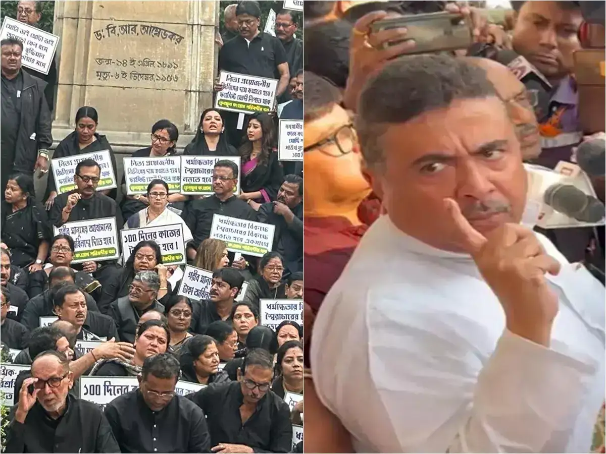 মঙ্গলবার থেকেই বিধানসভা চত্বরে কেন্দ্রীয় বঞ্চনার প্রতিবাদে ২ ঘণ্টা করে ধরনা কর্মসূচি পালন করছে তৃণমূল। এদিন অমিত শাহের শহরে আসার দিনে বিধানসভায় আম্বেদকরের মূর্তির পাদদেশে ধরনায় বসেন তৃণমূল বিধায়কেরা। নির্দিষ্ট সময়েই শুরু হয় ধরনা। পরে মুখ্যমন্ত্রী মমতা বন্দ্যোপাধ্যায় এসে সামিল হন। মুখ্যমন্ত্রীকে লক্ষ্য করে শুভেন্দু স্লোগানিং শুরু করার পরে পালটা স্লোগানিং চলে তৃণমূলের তরফেও। পুরো ঘটনায় পরিস্থিতি আরও অবনতির হওয়ার আগেই মমতা বন্দ্যোপাধ্যায় দলীয় নেতাদের থামিয়ে মাইক হাতে তুলে নেন। তিনি বলেন, আমাদের অনুমতি নেওয়া সভা আর অন্যদিকে সভা ফ্লপ হয়েছে বলে এখানে অসভ্যতা করতে এসেছে কিছু কাপুরুষের দল। এরা সভ্যতা ভদ্রতা জানে না। আমাদের পারমিশন নেওয়া সভা, ওদেরটা বেআইনি। বিধানসভা স্পিকারের আওতায়। এই অসভ্যতা, জল্লাদ গিরি যারা এখানে করেছে আমি স্পিকারকে অনুরোধ করব, আপনি টিভি রেকর্ডিং দেখে ও পুলিশের সঙ্গে কথা বলে পদক্ষেপ করুন।’