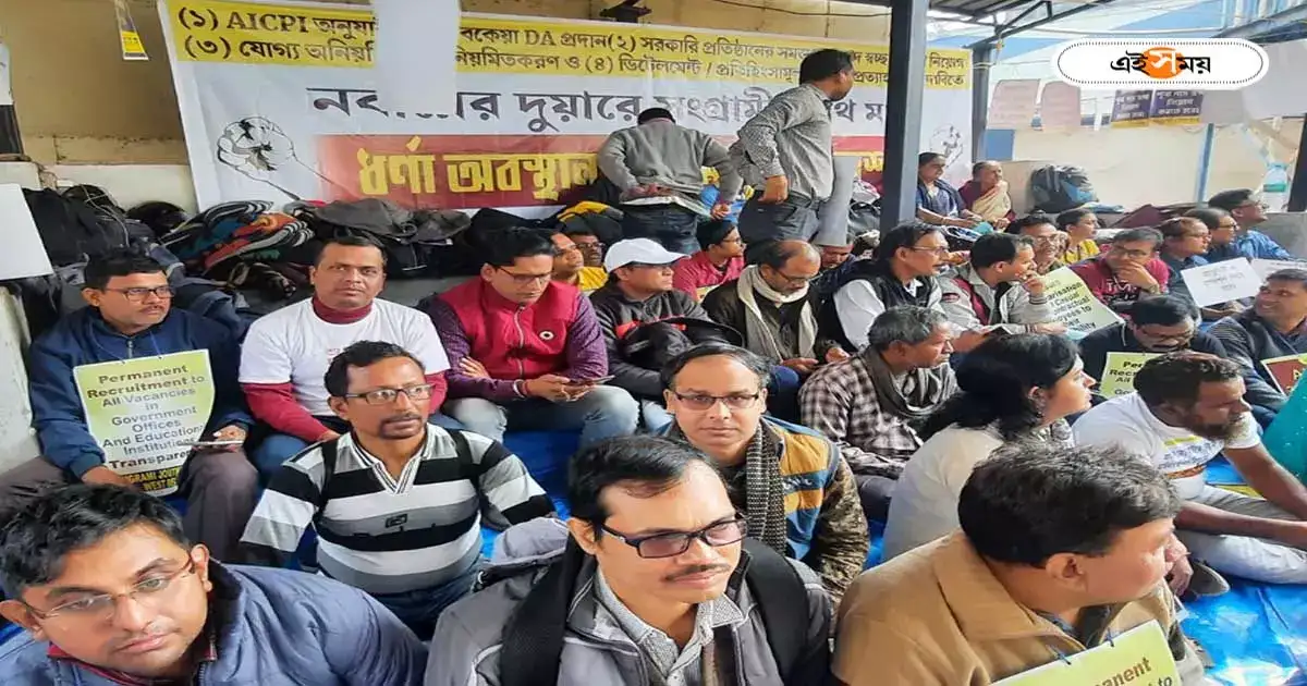 প্রসঙ্গত, গত বৃহস্পতিবার আরও ৪ শতাংশ ডিএ বৃদ্ধির ঘোষণা করেন রাজ্যের মুখ্যমন্ত্রী মমতা বন্দ্যোপাধ্যায়। তবে এই ডিএ ঘোষণার পর সংগ্রামী যৌথ মঞ্চের তরফে দাবি করা হয়, এটা ‘ভিক্ষার দান’, এই ৪ শতাংশ ডিএ বৃদ্ধিকে তাঁরা আদৌ স্বাগত জানাচ্ছেন না। কেন্দ্রের সঙ্গে সমতুল্য রেখে ডিএ বৃদ্ধির দাবিতে অনড় তাঁরা। এরপরেই পূর্ব নির্ধারিত কর্মসূচি অনুযায়ী নবান্নের অনতিদূরে ধরনা কর্মসূচি শুরু কর তাঁরা।