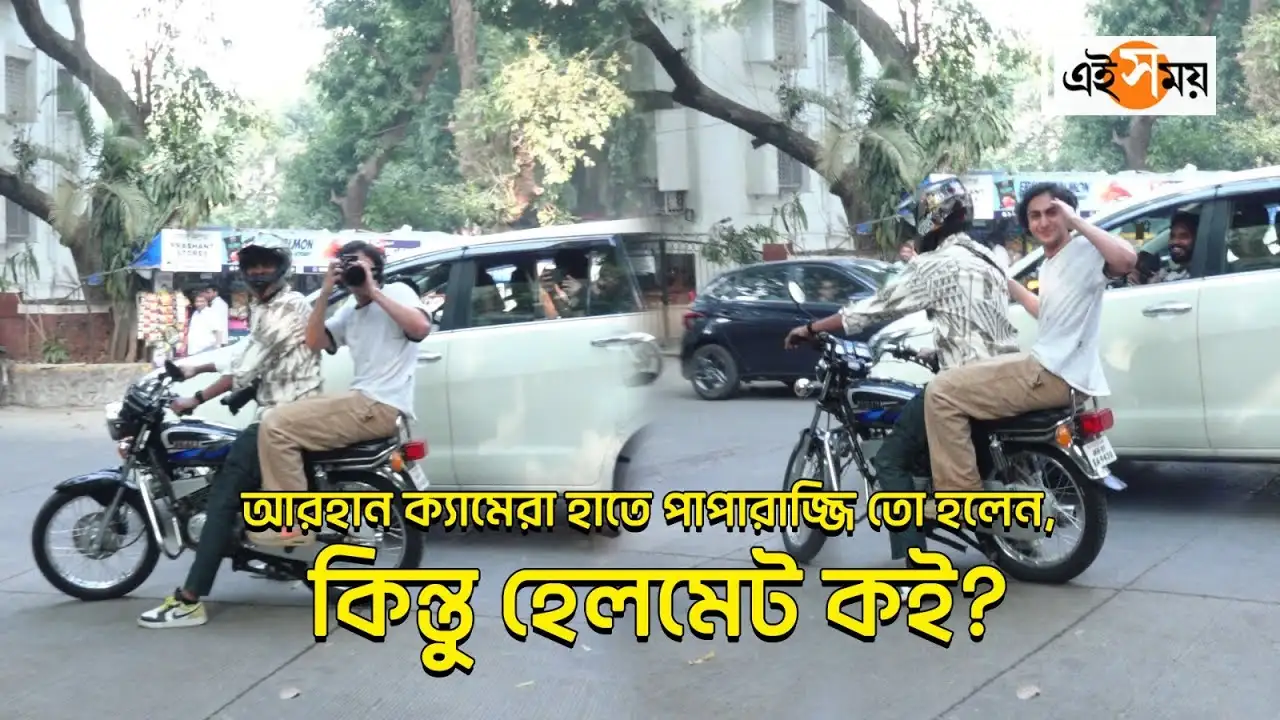 বাবা আরবাজ খানের দ্বিতীয় বিয়ের পর থেকেই তুমুল চর্চায় আরহান খান। এই তিনি বাবার বিয়েতে নাচে গানে মশগুল। তো পর মুহূর্তে মা মালাইকাকে সঙ্গ দিচ্ছেন ক্রিসমাসে। ছেলে হিসেবে কত দায়িত্ব বলুন তো? আর তারই মধ্যে হঠাত্‌ করেই আরহানের ইচ্ছে হল একটু ক্যামেরা হাতে কারিকুরি করার। যে চিত্র সাংবাদিকরা তাঁদের সর্বক্ষণ ছবি তোলেন, তাঁদের জীবনটা একটু উপভোগ করতে চাইলেন আরহান খান। বাইকে চেপে ক্যামেরা হাতে বেরিয়ে পড়লেন। খানিক ছবিও তুললেন, আর তারপর স্টার সুলভ কায়দায় হাত নেড়ে বেরিয়েও গেলেন। কিন্তু আরহান মাথার হেলমেটটা কোথায় গেল বলুন তো?