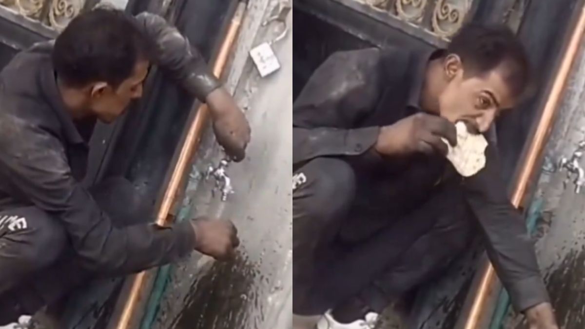 सोशल मीडिया पर वैसे तो हर रोज ऐसे कई वीडिय वायरल होते हैं जो लोगों को हंसने पर मजबूर कर देते हैं। मगर कभी-कभी कुछ वीडियो लोगों को इमोशनल भी कर देते हैं। ऐसा ही एक वीडियो वायरल हो रहा है। वीडियो में आप देख सकते हैं कि एक शख्स किसी नल के पास अपने हाथ में रोटी लिए बैठा है। बंदा नल से पानी चालू करके उस रोटी को भिगाता है और फिर उसे काटकर खाता है। वीडियो देखकर ऐसा मालूम होता है कि यह रोटी भी कई दिन पहले की है क्योंकि उसे काटने के लिए शख्स को मेहनत करना पड़ रहा है। वीडियो सोशल मीडिया पर खूब वायरल हो रहा है।