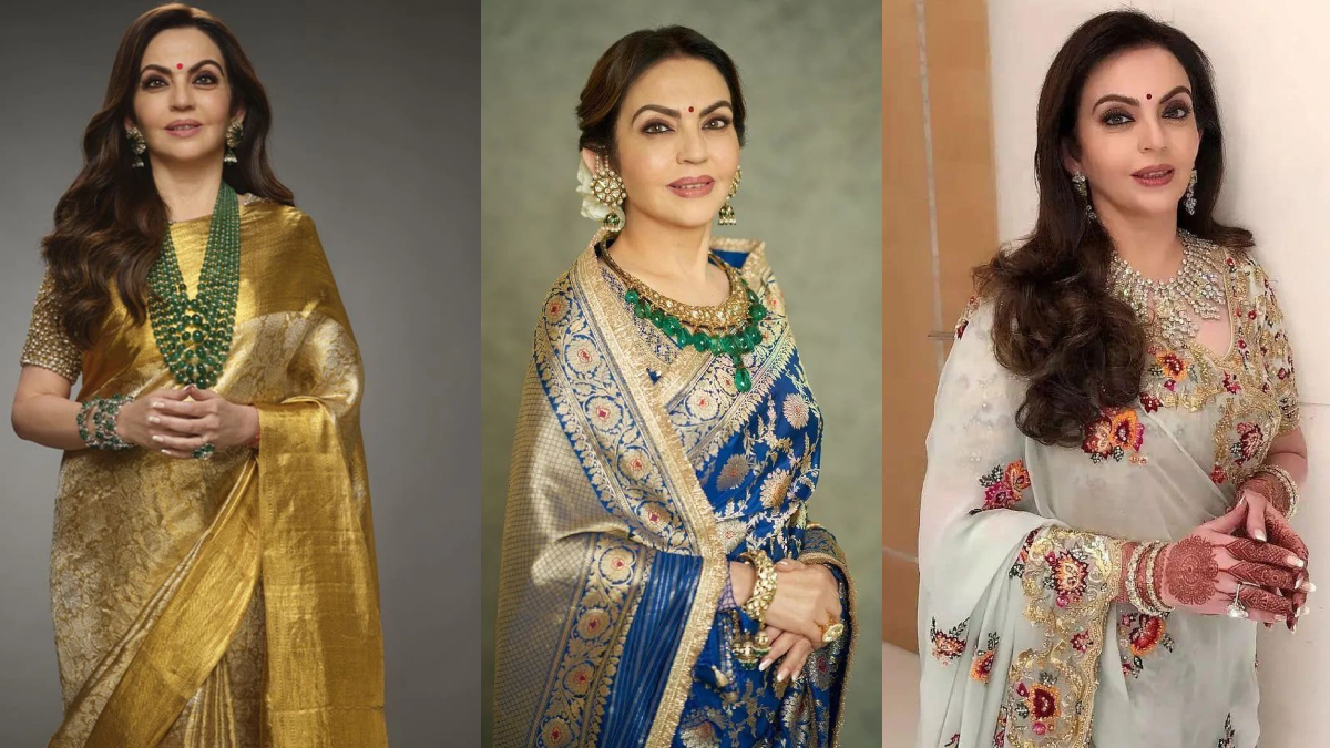 देश के सबसे बड़े बिजनेसमैन मुकेश अंबानी की पत्नी और रिलाइंस फाउंडेशन की चेयरपर्सन नीता अंबानी अपने शानदार फैशन सेंस के लिए भी जानी जाती हैं। कोई भी इवेंट हो नीता अंबानी अपनी ब्यूटी, स्टाइल और शानदार एपीयरेंस की वजह से अपनी फैमिली की सारी लेडीज पर भारी पड़ती हैं। इतना ही नहीं नीता अंबानी के सामने बॉलीवुड एक्ट्रेस की चमक भी फीकी नजर आती है। भारतीय परिधान साड़ी से नीता अंबानी को खास लगाव है। नीता अंबानी की वार्डरोब में पास आपको एक से एक कीमती और देश के अलग अलग हिस्सों की फेमस साड़ियों का कलेक्शन देखने को मिलेगा।