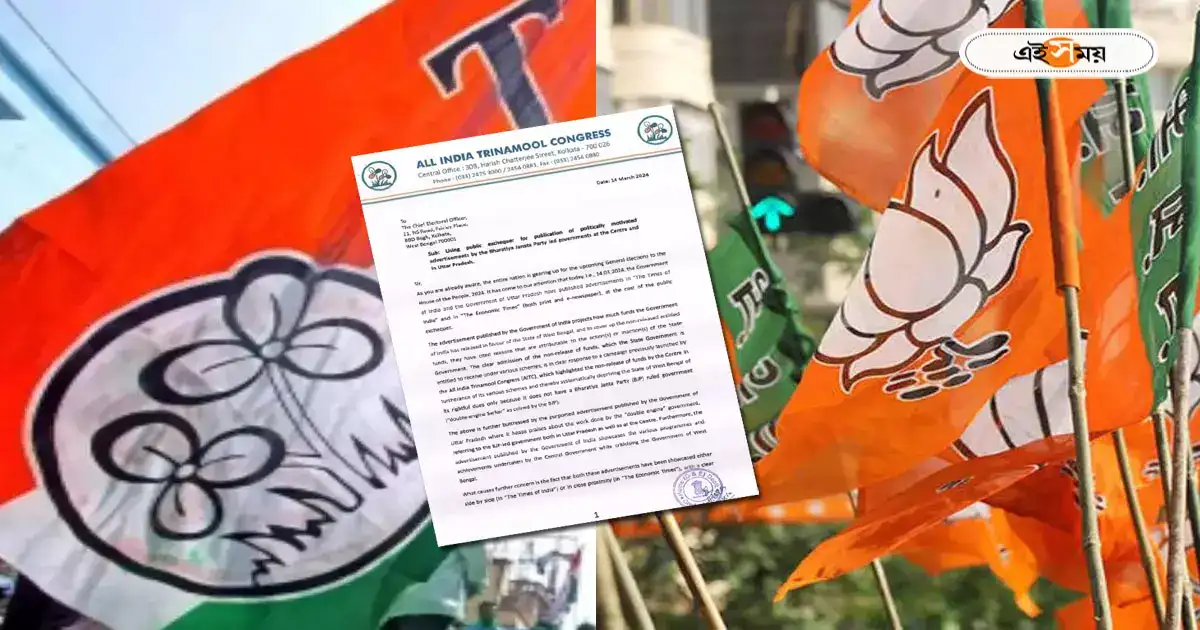 সেই বিজ্ঞাপনটি নিয়েই এবার কমিশনের দ্বারস্থ হল বিজেপি। গতকালের সভা থেকেও এই বিষয়টি নিয়ে সুর চড়িয়েছেন অভিষেক। এমনকি, সভার মাঝেই ভিডিয়ো ক্লিপিং দেখিয়ে বিজেপির ‘মিথ্যা প্রতিশ্রুতি’ দেওয়ার অভিযোগ তুলে উপস্থিত জনগণকে বিশেষ বার্তা দেন তিনি। সেখানেই কেন্দ্রীয় সরকারকে চ্যালেঞ্জ ছুঁড়ে দিয়ে কেন্দ্রীয় সরকারের আর্থিক সাহায্য সম্পর্কে শ্বেতপত্র প্রকাশের দাবি করা হয়। অন্যদিকে, বিজেপির তরফে এই সব প্রকল্পে একগুচ্ছ দুর্নীতি হয়েছে পালটা অভিযোগ তোলা হয়।
