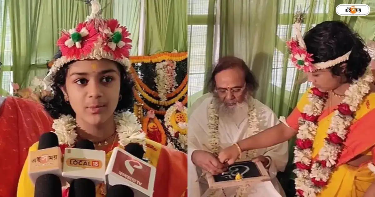 ‘বামুন চিনি পৈতা প্রমাণ, বামনি চিনি কী করে…?’ ফকির লালনের এই প্রশ্নের মধ্যেই রয়ে গিয়েছে সেই চিরন্তন কথা, পৈতে তো হয় ‘বামুন’-এর, অর্থাৎ পুরুষদের। মেয়েদের আবার পৈতে ধারণের রেওয়াজ আছে নাকি? কিন্তু ছিল। বৈদিক যুগে নাকি এমনই কোনও রীতি রেওয়াজ ছিল। সেই প্রাচীন সময়ের কথাই ২০২৪ সালে মনে করাল পঞ্চম শ্রেণির ছাত্রী কৈরভী। বীরভূমের সিউড়ির বাসিন্দা কৈরভী বন্দোপাধ্যায়। না, সে এখনও ধর্ম, নিয়ম, রীতি, বৈদিক যুগ- এ সব কিছুই বোঝে না। তবে কৈরভীর চিকিৎসক বাবা, মা প্রচলিত রীতির পরিপন্থী হয়ে এক সিদ্ধান্ত নিয়েছিলেন, আর তার জেরেই বুধবার বৈদিক মতে নতুন এক রীতি রেওয়াজের মধ্যে দিয়ে গেল করল কৈরভী।বুধবার দুপুরে হলুদ শাড়ি, রংবেরঙের গয়না পরে, চারিদিকের সাজসাজ উৎসবের মানে বোঝার চেষ্টা করছিল দশ বছরের মেয়েটি। তাকে ঘিরেই সব আয়োজন। নিজে আগে পৈতে বা উপনয়ন দেখেছে। তবে সে সব দাদাদের। কিন্তু এ বার তারই পৈতে। ছোট্ট মেয়েটি বলল, ‘মা বলেছে, আজ আমার দ্বিতীয় জন্ম হবে।’ অবশ্য মেয়ের পৈতে দিতে কম কাঠখড় পোড়াতে হয়নি মা কৌশানী চট্টোপাধ্যায়কে। ব্রাহ্মণ পরিবারে ছেলেদের পৈতে তো হয়ই। কিন্তু মেয়ের পৈতে! অনেক বিস্ময়ের জবাব দিয়ে, মেয়ের অধিকার বুঝিয়ে দিতে চেয়েছিলেন তার মা ও বাবা, আর শেষ পর্যন্ত তা পারলেনও। দীর্ঘদিন ধরেই চলছিল প্রস্তুতি। কোথায় আয়োজিত হবে এই অনুষ্ঠান, সেইসব নিয়েও চলছিল খোঁজখবর। অবশেষে বুধবার বন্দ্যোপাধ্যায় দম্পতির ইচ্ছাপূরণ হল।