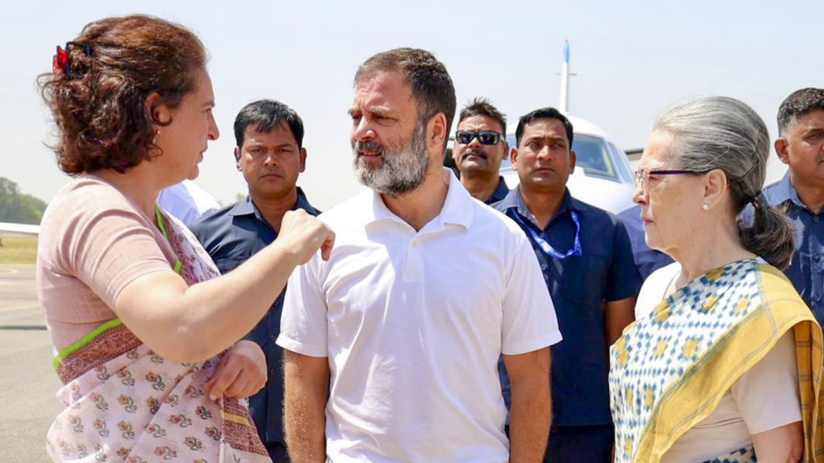 रायबरेली में कांग्रेस नेता प्रियंका गांधी, राहुल गांधी और सोनिया गांधी।