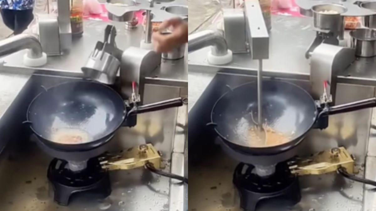सोशल मीडिया पर वायरल हो रहे वीडियो में नजर आ रहा है कि मशीन का एक सेटअप रखा गया है। वीडियो में नजर आ रहा है कि मशीन बारी-बारी जरूरी इंग्रेडिएंट्स कढ़ाई में अपने आप डाल रहा है इसके बाद उन्हें अच्छे से मिला भी रहा है। इस मशीन को को चालू करने के बाद आपको कुछ भी नहीं करना है। यहां तक की कढ़ाई को भी मशीन खुद हिला रही है। इसमें आपको बस सब्जियों को काटकर और मसाले को सही क्रम में रखना है ताकि मशीन उसके मुताबिक उसका इस्तेमाल कर सके। अगर आपको हमारी बातों पर यकीन नहीं हो रहा है तो आप खुद वायरल वीडियो को देख लीजिए।