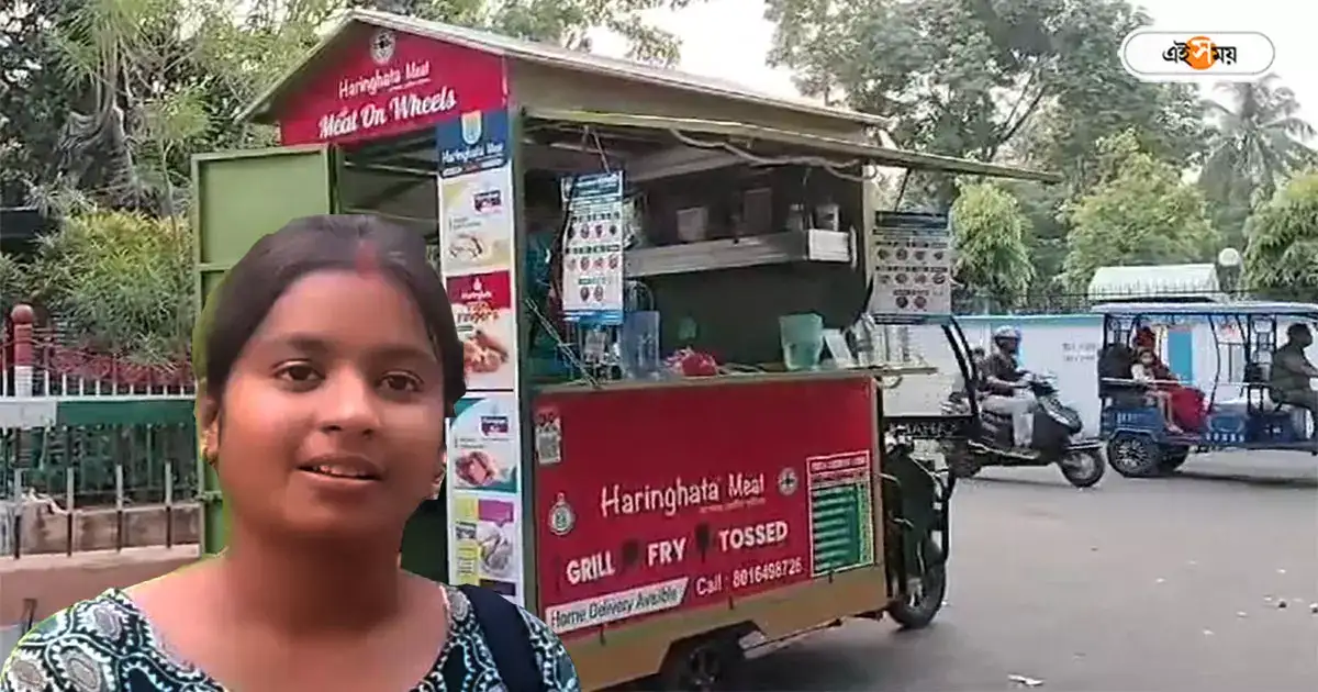 ‘ফুড অন হুইল’-এ হরিণঘাটার মাংস পাওয়া যায়। বিভিন্ন আইটেমের মাংস ছাড়াও মোমো বিক্রি করছেন মহিলা। তবে এখানে হরিণঘাটার কাঁচা মাংসও বিক্রি করছেন। তাঁর গাড়ি দেখে এগিয়ে আসছেন অনেক ক্রেতাই। সন্ধ্যার পর থেকেই টোটো গাড়ির সামনে ক্রেতাদের ভিড়। মুখরোচক নানা খাবারের গুণমান এবং স্বাদের প্রশংসা করছেন সকলেই।