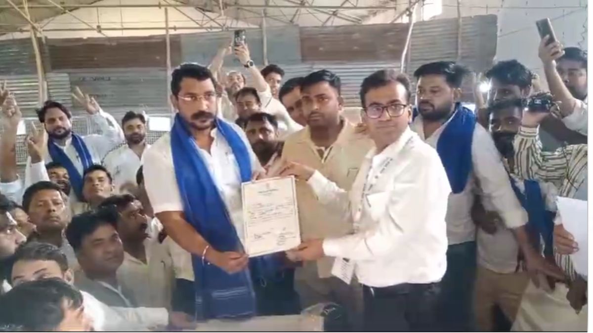 जीत का प्रमाण पत्र लेते चंद्रशेखर