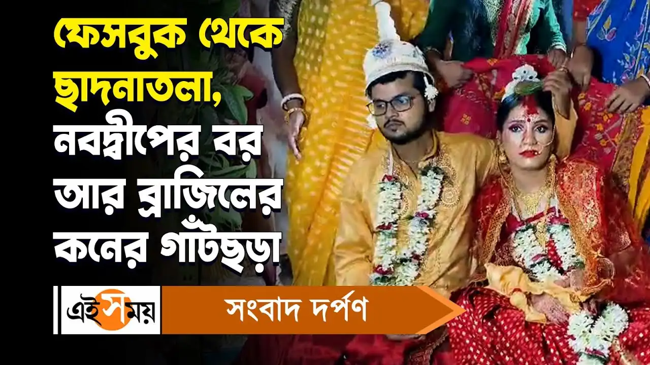 গাঁটছড়া ব্রাজিল আর বাংলার। ব্রাজিলের কন্যার সঙ্গে সাতপাকে বাঁধা পড়লেন নবদ্বীপের পাত্র। সোশ্যাল মিডিয়া বেঁধে দিয়েছিল বন্ধনহীন গ্রন্থি, সেই সম্পর্কই আজ এসে পৌঁছল ছাদনাতলায়। প্রায় ছয় বছর আগে ফেসবুকে পরিচয়, তার থেকেই ভালোবাসা। দেশ, সীমানার বেড়া ভেঙে ভার্চুয়ালেই পূর্ণতা পায় সে প্রেম। সেই প্রেমের টানেই প্রেমিক কার্তিক মণ্ডলের সঙ্গে সংসার করতে সুদূর ব্রাজিল থেকে নবদ্বীপে ছুটে এসেছেন ব্রাজিলিয়ান কন্যা ‘ম্যানুয়েলা আলভেস দা সিলভা’। ভাষার ব্যবধান মুছে স্মার্ট ট্রান্সলেটরের সৌজন্যে দিব্যি ডালপালা মেলেছে প্রেম। প্রেমের পথ পেরতে ভাষা কখনও বাধা হয়ে দাঁড়ায়নি। এদিনে বিয়ের মণ্ডপেই প্রেমিক কার্তিকের যত্নে সংস্কৃত, বাংলা বুঝতে অসুবিধা হয়নি ম্যানুয়েলার। পাত্র কার্তিক বিভিন্ন ভাবে তার জীবন সঙ্গিনী কে মোবাইলে বাংলা থেকে পর্তুগিজ ভাষায় অনুবাদ করে দিচ্ছিলেন মন্ত্র। পুরোহিতের সঙ্গে সঙ্গে বাংলা ও সংস্কৃত ভাষায় মন্ত্রচ্চারণ করে নিষ্ঠা ভরে বিয়ের আচার পালন করে ব্রাজিলিয়ন কনে। নতুন জীবনের শুরুর আগেই অল্পস্বল্প বাংলাও শিখে নিয়েছেন নববধূ।