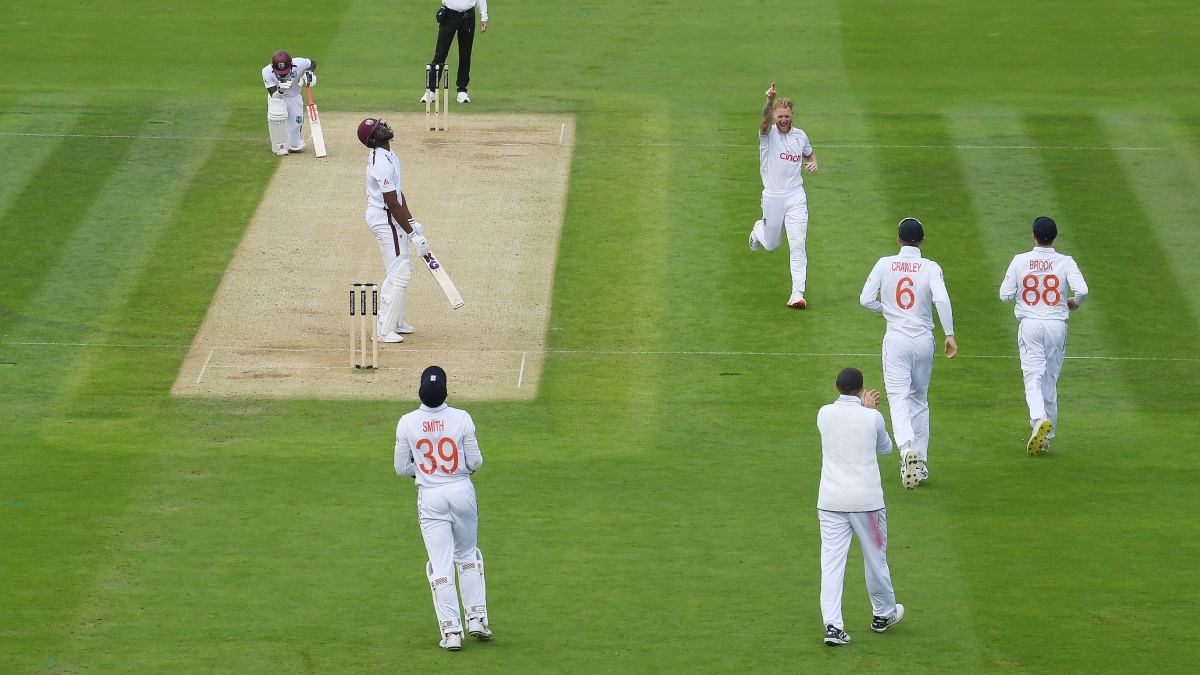 वेस्टइंडीज के खिलाफ लॉर्ड्स टेस्ट मैच में विकेट लेने के बाद अपनी प्रतिक्रिया व्यक्त करते हुए बेन स्टोक्स।