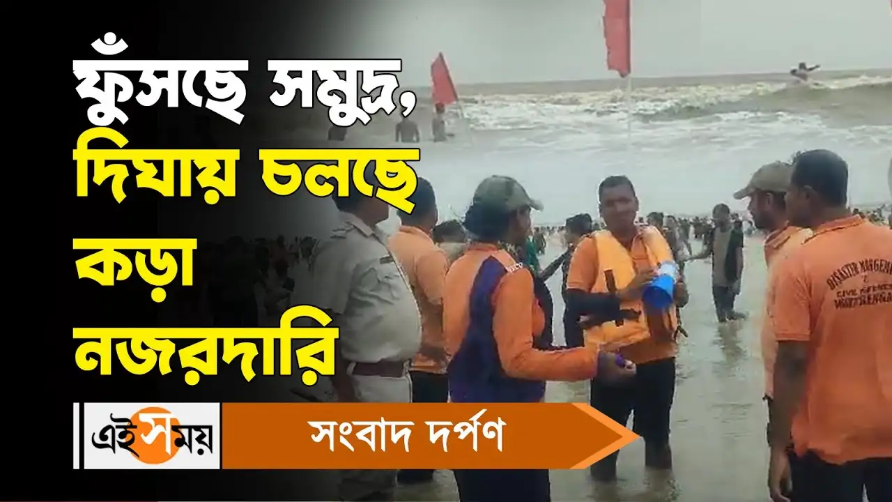 বর্ষায় দিঘার সমুদ্রের ভয়ঙ্কর সৌন্দর্য উপভোগ করতে উইকেন্ডে দিঘায় যাওয়ার প্ল্যান করেন অনেকেই। তবে এখন দিঘা গেলে সমুদ্র স্নানটা নাও হতে পারে। কারণ নিম্নচাপের জেরে দিঘায় উত্তাল সমুদ্র, তাই বেশ কড়াকড়ি রয়েছে এখন সেখানে। নিম্নচাপের জেরে জেলায় জেলায় চলছে বৃষ্টিপাত। আর তার প্রভাবেই দিঘায় উত্তাল সমুদ্র। এই ভয়ঙ্কর রূপই যেন সব সময়েই আকৃষ্ট করে পর্যটকদের (Rough Sea Condition)। দিঘার সৈকতে ভিড় জমিয়েছেন পর্যটকরা (Digha Sea Beach News)। তবে যাতে কোনওরকম অপ্রীতিকর ঘটনা না ঘটে তাই সেখানে চলছে কড়া নজরদারি। গভীর সমুদ্রে যেতে জারি রয়েছে নিষেধাজ্ঞা। প্রশাসনের তরফে মাইকিং করে প্রচার চালানো হচ্ছে পর্যটকদের সচেতন করার জন্য। বিস্তারিত জেনে নিন এই ভিডিয়ো।