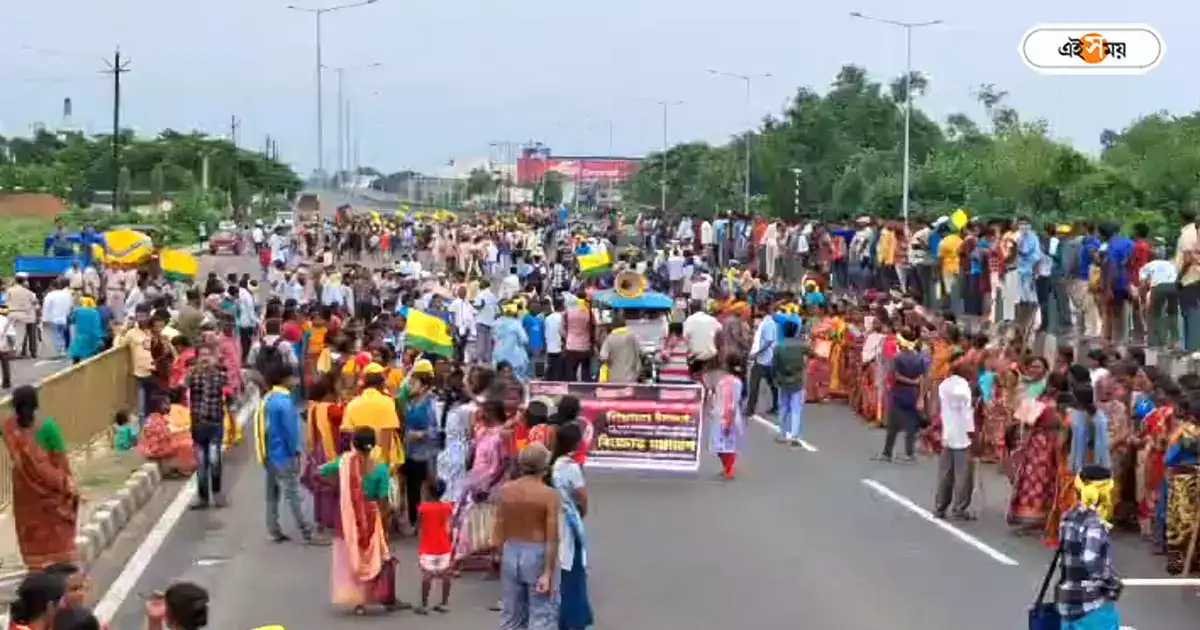 আরজি কর কাণ্ড নিয়ে প্রতিবাদ চলছে সারা রাজ্য জুড়ে। এর মাঝেই এই তরুণীকে গলা কেটে নৃশংস খুনের অভিযোগ ওঠে বর্ধমান জেলায়। এই ঘটনায় এখনও পর্যন্ত কাউকে গ্রেপ্তার করা হয়নি। ঘটনার প্রতিবাদে ১৯ নম্বর জাতীয় সড়ক অবরোধ করল আদিবাসী সম্প্রদায়ের মানুষ। ব্যাহত হয় যান চলাচল পরিষেবা। প্রায় ৫ ঘণ্টা পর অবরোধ তুলে নেন আদিবাসীরা।বর্ধমানের নান্দুর ঝাপান তলায় আদিবাসী ছাত্রীকে গলার নলি কেটে নৃশংস ভাবে খুনের ঘটনার প্রতিবাদে এদিন অবরোধ করেন স্থানীয় বাসিন্দারা। এই ঘটনায় জড়িতদের দ্রুত ও দৃষ্টান্তমূলক শাস্তির দাবিতে ১৯ নম্বর জাতীয় সড়ক অবরোধে সামিল হয় আদিবাসী সংগঠন ভারত জাকাত মাঝি পরগনা মহল। ১৯ নং নম্বর জাতীয় সড়কের কাঁন্দোরসোনা এলাকায় তীর-ধনুক, লাঠি, বল্লম নিয়ে প্রতিবাদ আন্দোলনে সামিল আদিবাসী সম্প্রদায়ের মানুষরা। এদিন পুলিশকে ১০ দিনের সময়সীমা দিয়েছেন আন্দোলনকারীরা। আগামী ১০ দিনের মধ্যে আততায়ীকে গ্রেপ্তার করতে হবে। এই শর্তে টানা ৫ ঘণ্টা পর জাতীয় সড়কের অবরোধ তুলল আদিবাসীরা।