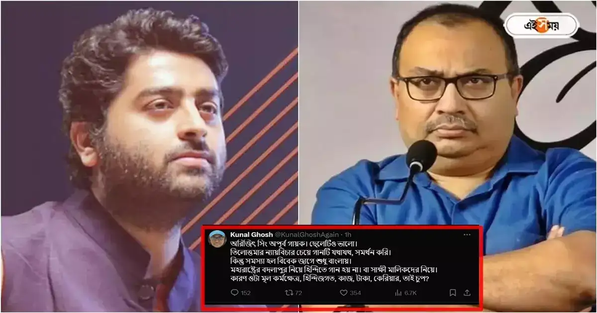 আরজি কর কাণ্ড নিয়ে গত কয়েকদিন ধরেই পথে নেমে প্রতিবাদ করছেন জুনিয়র ডাক্তার থেকে শুরু করে, সমাজের সমস্ত স্তরের মানুষ। তাঁদের সঙ্গে প্রতিবাদে সামিল শিল্পী-বুদ্ধিজীবীরা। প্রতিবাদ জানাতে ‘আর কবে’ বলে একটি গানও বেঁধেছেন অরিজিৎ সিং। কিন্তু কেন শুরু বাংলার ক্ষেত্রেই ‘বিবেক জাগে’? এবার সোশ্যাল মিডিয়ায় এই প্রশ্ন তুললেন তৃণমূল নেতা কুণাল ঘোষ।শুক্রবার তিনি এক্স হ্যান্ডলে একটি পোস্ট শেয়ার করেন। সেখানে লেখেন, ‘অরিজিৎ সিং অপূর্ব গায়ক। ছেলেটিও ভালো। তিলোত্তমার ন্যায়বিচার চেয়ে গানটি যথাযথ, সমর্থন করি। কিন্তু সমস্যা হল বিবেক জাগে শুধু বাংলায়। মহারাষ্ট্রের বদলাপুর নিয়ে হিন্দিতে গান হয় না বা সাক্ষী মালিকদের নিয়ে। কারণ ওটা মূল কর্মক্ষেত্র, হিন্দিজগত, কাজ, টাকা, কেরিয়ার, তাই চুপ?’ কুণালের পোস্টে সুক্ষ্ম খোঁচা স্পষ্ট, মনে করছে ওয়াকিবহাল মহল।