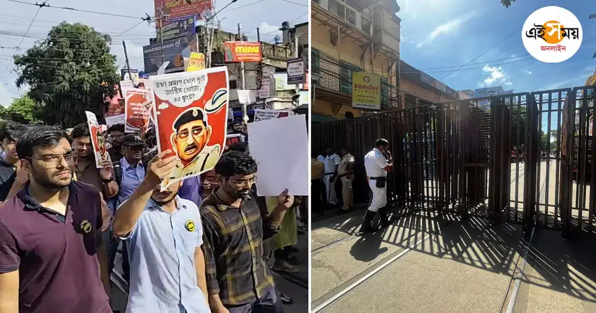 কলকাতা পুলিশ কমিশনার বিনীত গোয়েলের পদত্যাগ-সহ চার দফা দাবি নিয়ে জুনিয়র ডাক্তারদের লালবাজার অভিযান শুরু। আন্দোলনকারীদের আটকাতে বৌবাজারে বসেছে লোহার গার্ডরেল। ব্যারিকেড করা হয়েছে বিবি গাঙ্গুলি স্ট্রিটেও। প্রায় ন’ফুট সমান উচ্চতার গার্ডরেলের দেওয়াল তুলে নিরাপত্তার বজ্র আঁটুনি তৈরি হয়েছে। বিচারের দাবিতে অবিচল থেকেই ‘লালবাজার অভিযান’ শুরু করলেন জুনিয়র ডাক্তাররা।আরজি কর হাসপাতালে মহিলা চিকিৎসককে ধর্ষণ-খুনের ঘটনায় পেরিয়ে গিয়েছে ২৩ দিন। এই ঘটনার পর থেকে ‘বিচার চাই’ দাবি তুলে কর্মবিরতি চালিয়ে আসছেন জুনিয়র ডাক্তাররা। এর মাঝেই গত শনিবার থেকে টেলি মেডিসিন ও ‘অভয়া ক্লিনিক’ চালু করা হয়েছে। এ বার বিচারের দাবিতে সোমবার ‘লালবাজার অভিযান’-এর ডাক দেন জুনিয়র চিকিৎসকেরা। দুপুর ২টোয় কলেজ স্কোয়্যার থেকে মিছিল করে লালবাজারের উদ্দেশে রওনা দেন তাঁরা। কলকাতা মেডিক্যাল কলেজ এবং আরজি কর মেডিক্যাল কলেজের চিকিৎসকেরা গাড়িতে করে পৌঁছন জমায়েত স্থলে। সেখান থেকে মিছিল করে যাওয়া হয় লালবাজারের উদ্দেশে।