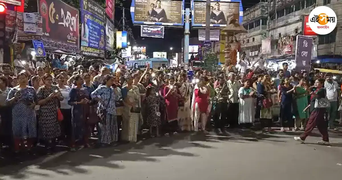 রাসবিহারীর এক প্রতিবাদ মঞ্চ থেকে তাঁরা এ দিন আবার দাবি তোলেন প্রমাণ লোপাটের। কুর্নিশ জানান মানুষের এই প্রতিবাদকেও। সিমলা স্ট্রিটে দেখা গেল অশীতিপর বৃদ্ধা মঞ্জুবালা নিয়োগীকে। নাতনিদের সঙ্গে নিয়ে এসেছিলেন রাত দখলের ডাকে। বলছেন, ‘সারা জীবনে অনেক বার উত্তাল কলকাতা দেখেছি। কিন্তু রাজনীতিকে বাইরে রেখে বার বার এমন ভাবে সাধারণ মানুষকে রাস্তায় নামতে দেখিনি। কোনও সরকারের বদল চাই না। আমরা বিচার চাই।’