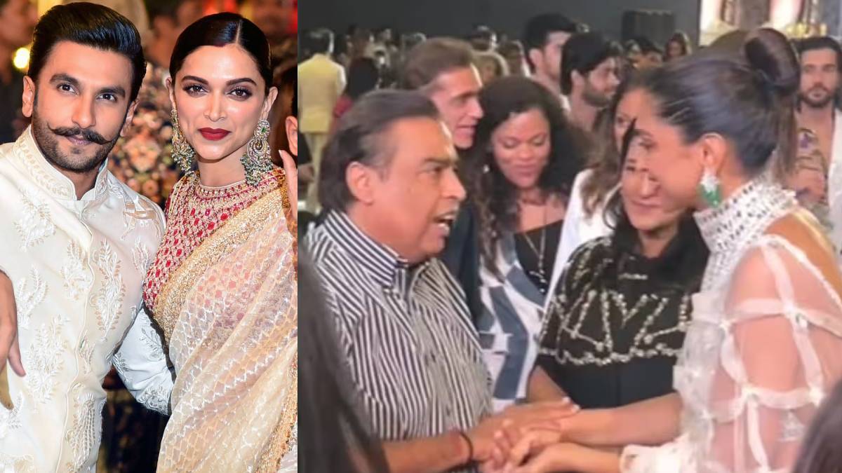 मुकेश अंबानी, दीपिका पादुकोण और रणवीर सिंह।