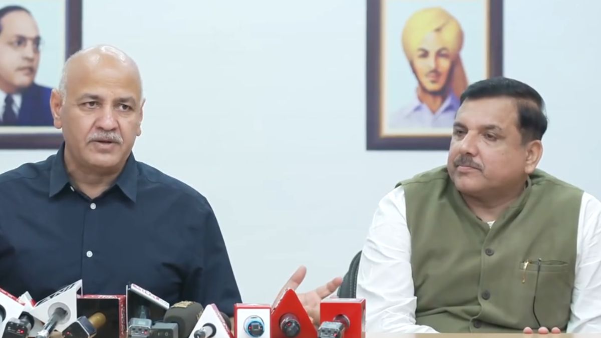 प्रेस कॉन्फ्रेंस के दौरान मनीष सिसोदिया और संजय सिंह।
