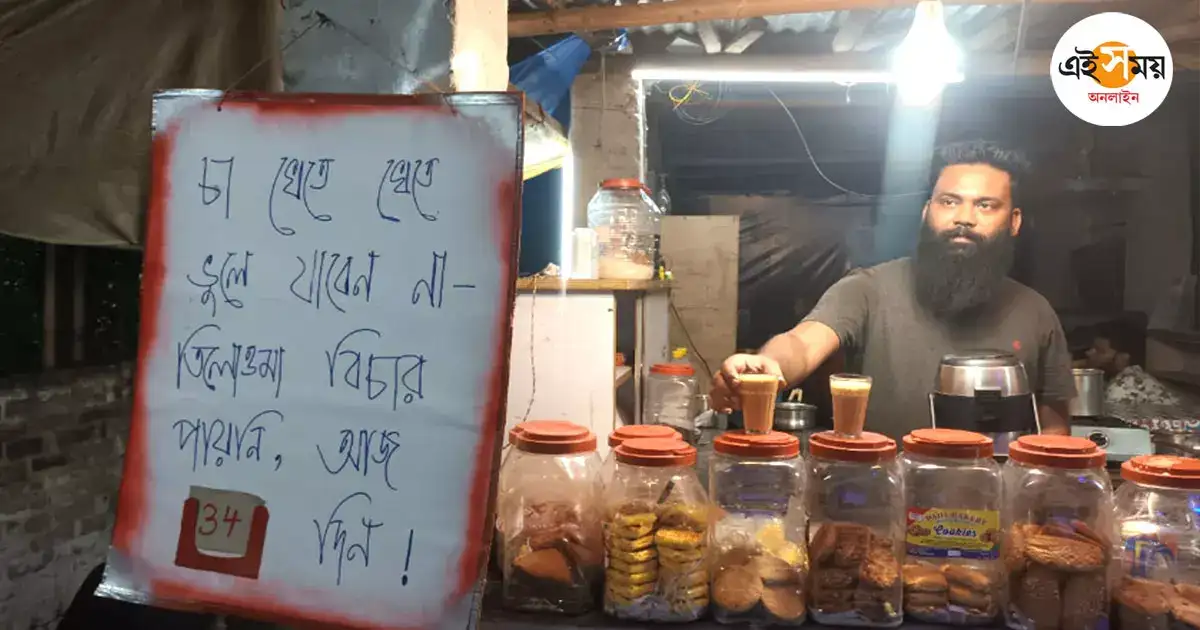 হুগলির বলাগড়ের এক চা বিক্রেতা প্রতিদিন আরজি করের ঘটনার বিচার চেয়ে তাঁর ব্যানারের তারিখ বদলে যান। তিনি ক্রেতাদের মনে করিয়ে দেন, তিলোত্তমার বিচার পাওয়া যায়নি কতদিন হল। বলাগড়ের জিরাটের বাসিন্দা সেই চা বিক্রেতার নাম জয় ধর। বছর ৩৬-এর জয়ের আসাম লিঙ্ক রোডের পাশে বারুইপাড়ায় রয়েছে চায়ের দোকান। বিএ ফাইনাল ইয়ার পড়তে পড়তে তিনি পড়াশোনা ছেড়ে দিয়েছিলেন।