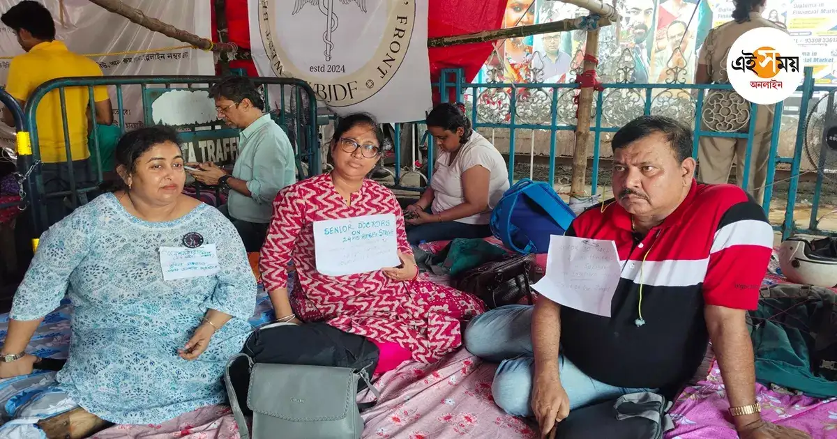 ৩৯ ঘণ্টা ধরে আন্দোলনরত জুনিয়র চিকিৎসকরা জানাচ্ছেন, তাঁদের দাবি পূরণ না হওয়া পর্যন্ত ধর্না মঞ্চ থেকে তাঁরা উঠবেন না। চিকিৎসক স্নিগ্ধা হাজরা বলেন, ‘আমি সুস্থ রয়েছি। কাজের জন্য আমাদের প্রায়ই ১৮ থেকে ২০ ঘণ্টা না খেয়ে থাকতে হয়। আমাদের দাবি দাওয়া খুবই স্পষ্ট।’