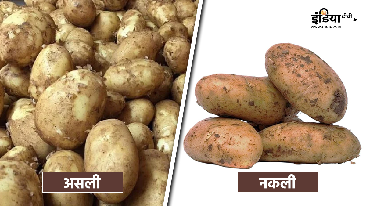 असली और नकली आलू की पहचान खुशबू से की जा सकती है। अगर आलू असली है तो इसमें नेचुरल खुशबू आएगी। जबकि नकली आलू में केमिकल की गंध आती है और इसका रंग हाथ पर छूटता है।