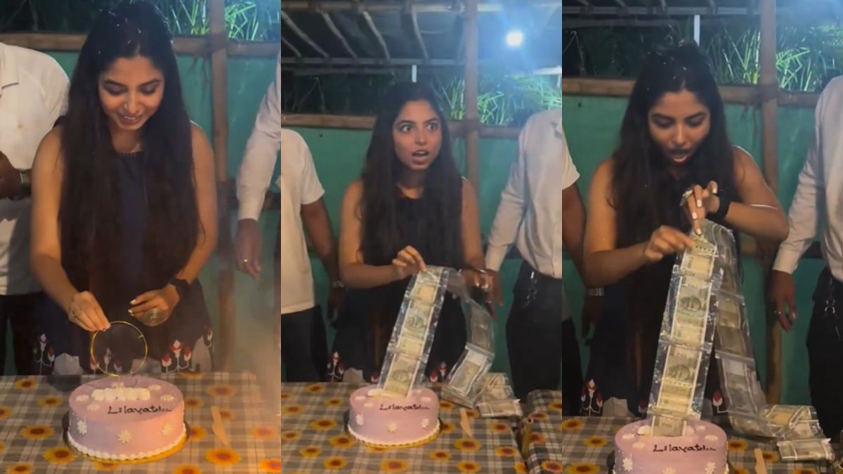 अभी जो वीडियो वायरल हो रहा है उसमें नजर आ रहा है कि एक लड़की के बर्थडे का केक काटा जा रहा है। सभी लोग बर्थडे गर्ल के करीब खड़े हैं। लड़की केक पर से बर्थडे विश का टैग हटाती है और उस टैग के नीचे ही उसका गिफ्ट जुड़ा हुआ होता है। दरअसल केक के अंदर 500-500 के नोटों को पॉलीथीन में डालकर एक लड़ी से लगी होती है उस टैग के नीचे लगा हुआ था। लड़की नोटों की लड़ी को खींचती जाती है और हैरान होती जाती है। नोटों को खींचते हुए पहले तो लड़की पूछती है कि यह खत्म कब होने वाला है और कुछ देर तक खींचने के बाद वह हैरान हो जाती है और कहती है कि मेरे घर पर कल रेड पड़ने वाला है।