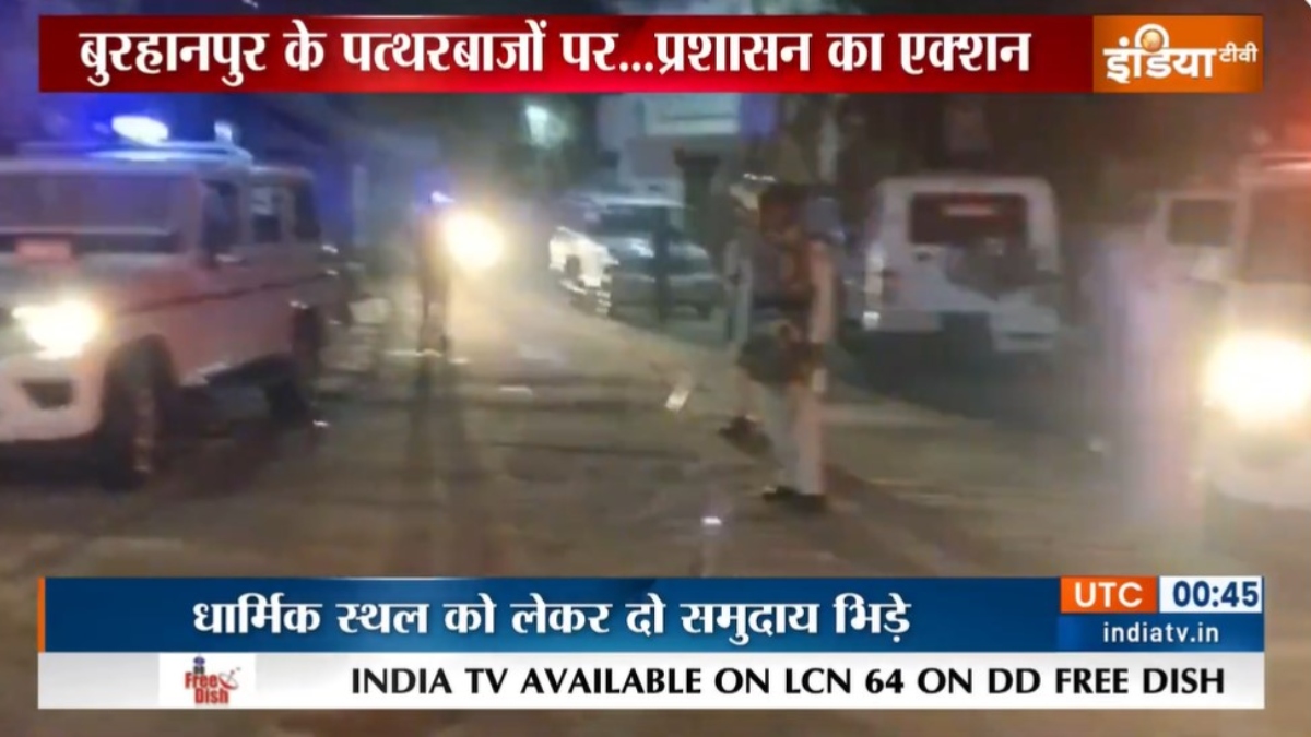 मध्य प्रदेश के बुरहानपुर में धार्मिक स्थल पर दो समुदायों के बीच बवाल हो गया है। चबूतरे पर दावे को लेकर दोनों ओर से पत्थरबाजी हुई है। पथराव के बाद इलाके में भारी पुलिस फोर्स की तैनाती की गई है। अब तक मिली जानकारी के मुताबिक, दोनों ओर से की गई पत्थरबाजी में 4 लोगों के घायल होने की खबर है। घायलों को अस्पताल में भर्ती कराया गया है।