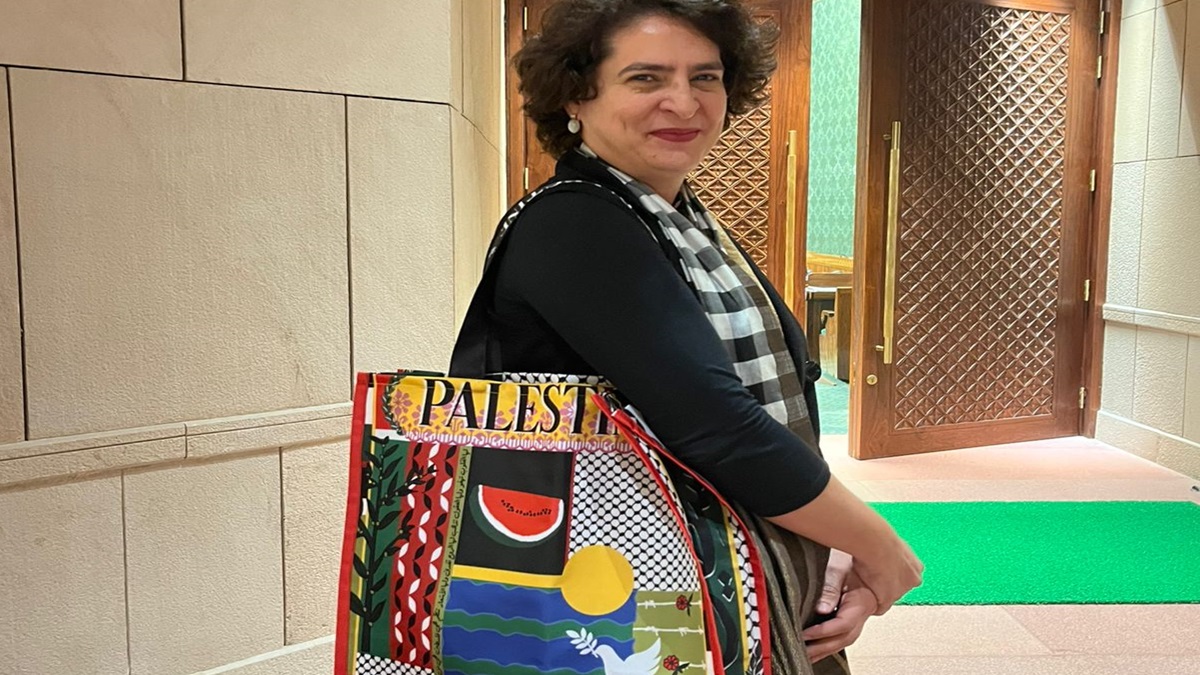 कांग्रेस का एक बार फिर फिलीस्तीन प्रेम दिखाई दिया है। प्रियंका गांधी की एक तस्वीर सामने आई है जिसमें उनके बैग पर “Palestine” लिखा हुआ है। कांग्रेस सांसद ये बैग लेकर संसद पहुंची थी। अब इस बैग पर सियासी घमासान शुरू हो गया है। बीजेपी ने प्रियंका गांधी पर हमला किया है। केंद्रीय मंत्री एसपी सिंह बघेल ने कहा कि प्रियंका मुस्लिम वोट के तुष्टिकरण के लिए फिलिस्तीन लिखा बैग लेकर आई हैं।