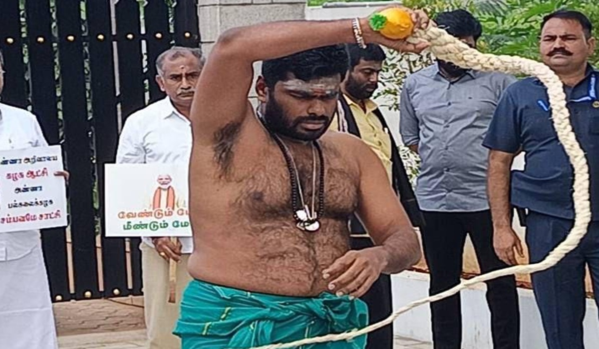 तमिलनाडु भारतीय जनता पार्टी के अध्यक्ष और पूर्व आईपीएस अधिकारी के. अन्नामलई ने आज कोयम्बटूर में अपने घर के बाहर खुद को कोड़े मारकर अनूठा विरोध प्रदर्शन किया। आज से उन्होंने 48 दिनों की मुरुगन दीक्षा शुरू की है। अन्नामलई ने एक भीष्म प्रतिज्ञा भी ली है कि तमिलनाडु से DMK सरकार के हटने तक वे अपने पैरों में चप्पल जूते नहीं पहनेंगे।