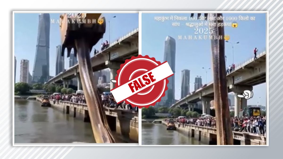 प्रयागराज में महाकुंभ का भव्य आयोजन किया गया है। यहां देश व दुनिया से श्रद्धालु पहुंच रहे हैं और आस्था की डुबकी लगा रहे हैं। इस बीच महाकुंभ की कई तस्वीरें और वीडियो सोशल मीडिया पर वायरल हो रहे हैं। कुछ तस्वीरें और वीडियो सहीं हैं तो कुछ फर्जी और डिजिटली क्रिएटेड हैं। दरअसल हाल ही में फेसबुक पर एक यूजर द्वारा एक वीडियो को शेयर किया गया और दावा किया गया कि महाकुंभ में 1000 किलोग्राम का सांप निकला है, जिसका आकार 120 फुट है। लेकिन जब हमने इस दावे की जांच की तो हमने पाया कि यह दावा पूरी तरह से फर्जी है और शेयर किया जा रहा वीडियो डिजटली क्रिएटेड है।
