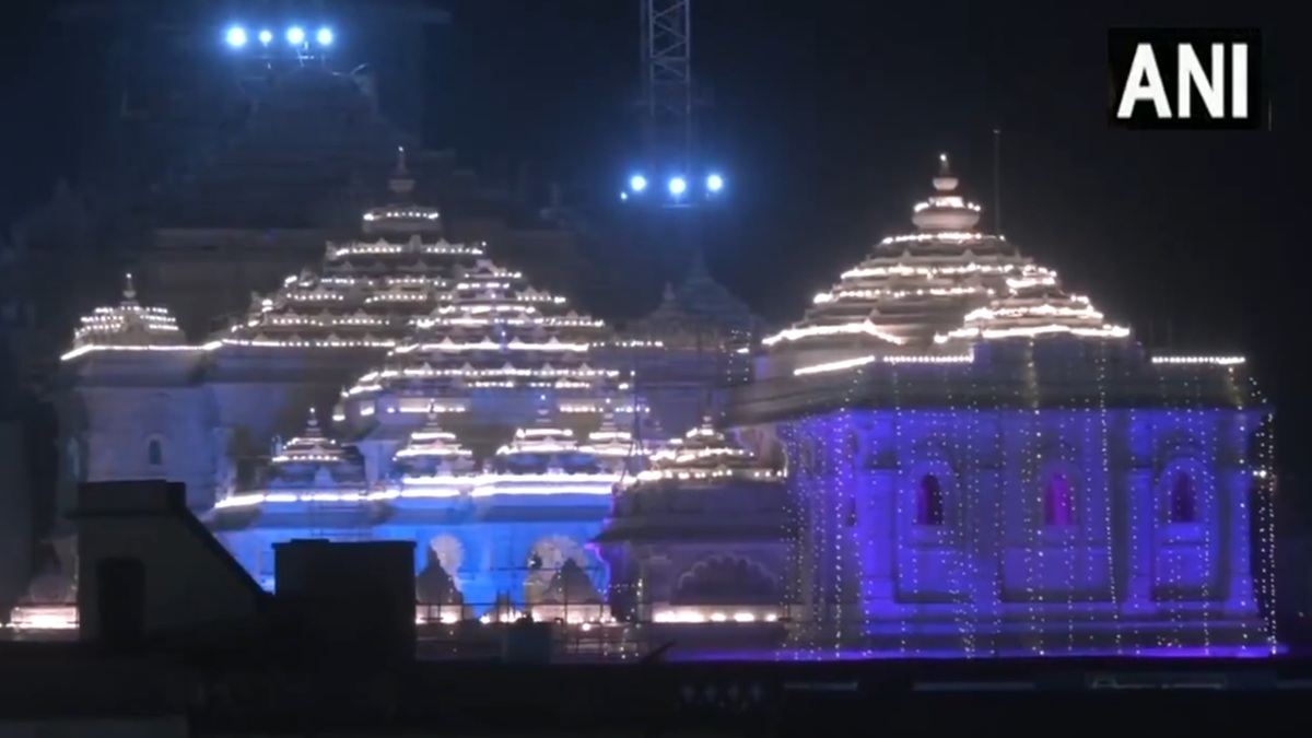 राम जन्मभूमि मंदिर को लाइटों से सजाया गया