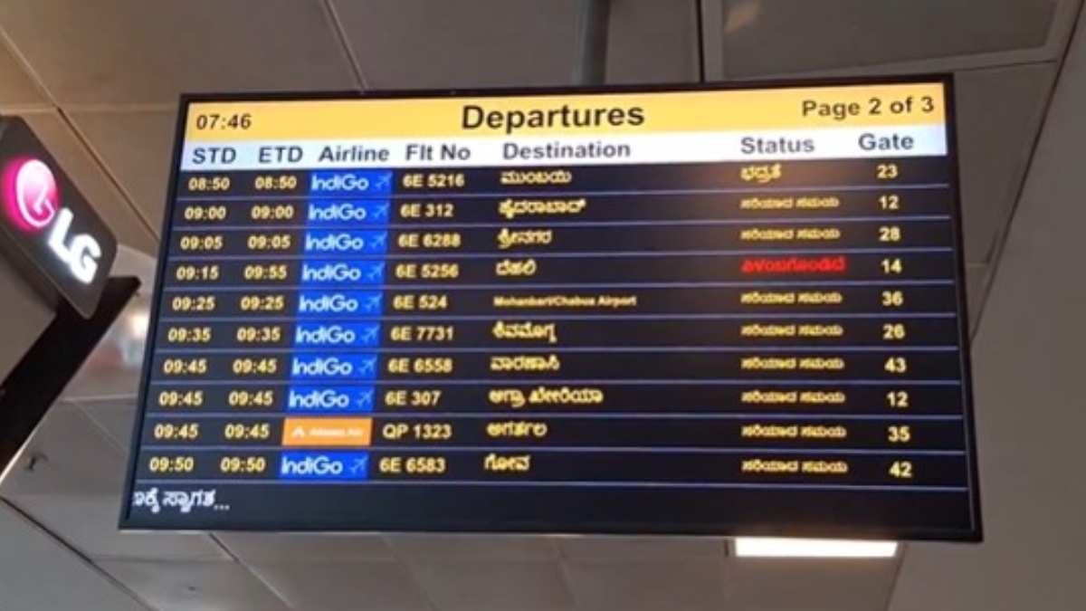 केंद्र और दक्षिणी राज्यों के बीच चल रहे भाषा युद्ध के बीच सोशल मीडिया पर एक नई बहस छिड़ गई है। सोशल मीडिया पर एक यूजर ने दावा किया कि कर्नाटक की राजधानी बेंगलुरु के केम्पेगौड़ा इंटरनेशनल एयरपोर्ट पर डिजिटल डिस्प्ले बोर्ड से हिंदी हटा दी गई है। हाल ही में सोशल मीडिया प्लेटफॉर्म ‘एक्स’ पर एक वीडियो वायरल हुआ है, जिसमें बेंगलुरु एयरपोर्ट पर एक डिजिटल स्क्रीन दिखाई गई थी, जिसमें फ्लाइट नंबर, गंतव्य, स्थिति और गेट नंबर सिर्फ कन्नड़ और अंग्रेज़ी में दिखाए गए थे।