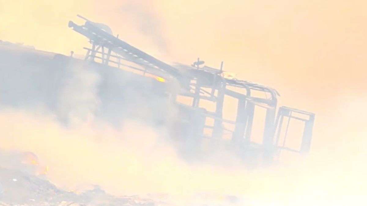 वहीं आग लगने की इस घटना में एक हैरान कर देने वाली बात भी सामने आई। यहां डम्पिंग यार्ड में लगी आग पर काबू पाने के लिए पहुंची एक फायर ब्रिगेड की गाड़ी ही आग की चपेट में आ गई। देखते ही देखते आग ने पूरी गाड़ी को अपने काबू में ले लिया और फायर ब्रिगेड की गाड़ी पूरी तरह से जलकर खाक हो गई। वहीं आग लगने की घटना का वीडियो भी सामने आया है, जिसमें देखा जा सकता है कि आग की लपटें काफी दूर तक उठ रही हैं और आसमान में हर तरफ धुआं ही धुआं दिखाई दे रहा है। फिलहाल आग पर काबू पाने का प्रयास किया जा रहा है।