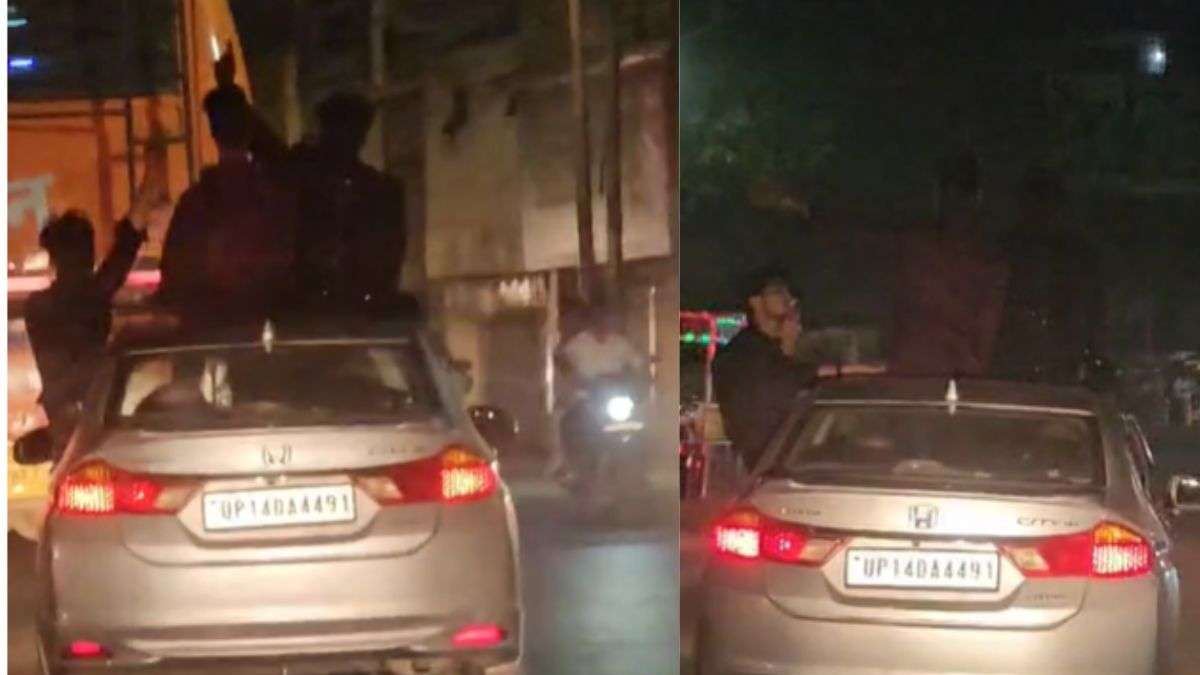 होंडा सिटी कार की छत पर बैठकर और खिड़की से लटककर स्टंट करते हुए रईसजादों का वीडियो वायरल हुआ है। वायरल वीडियो में लड़के सिगरेट के छल्ले उड़ाते हुए नजर आ रहे हैं और कार की छत पर बैठे हुए नजर आ रहे हैं। इन लड़कों ने हाथरस बस स्टैंड से लेकर तालाब चौराहे तक कार की छत पर बैठकर उत्पात मचाया है।