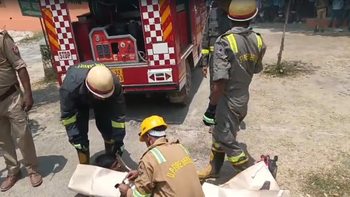 मॉक ड्रिल में लोगों के बचाते हुए सुरक्षाकर्मी