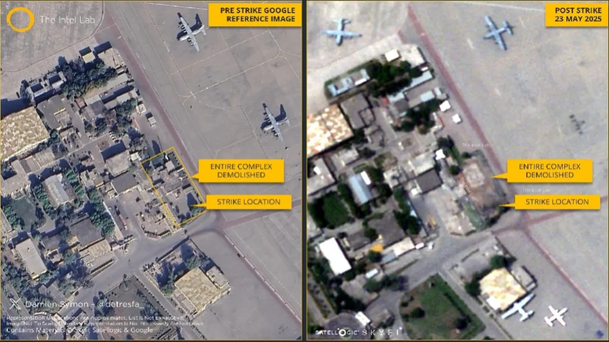 इंटेल लैब के अनुसार, नूर खान एयरबेस की ताजा सैटेलाइट इमेज में क्षतिग्रस्त हुआ हिस्सा पहले की प्रारंभिक रिपोर्ट से कहीं अधिक है। रक्षा विश्लेषक डेमियन साइमन (Damien Symon) ने सोशल मीडिया प्लेटफॉर्म एक्स पर पोस्ट किया, ‘पाकिस्तान के नूर खान एयरबेस की समीक्षा से पता चलता है कि भारत के हमले के स्थान के पास का पूरा परिसर अब नष्ट हो चुका है, जिससे पता चलता है कि हमले का प्रभाव दो ट्रकों के बराबर वाली जगह से कहीं अधिक था। नई सैटेलाइट इमेज नूर खान एयरबेस के नुकसान को दिखाती है।