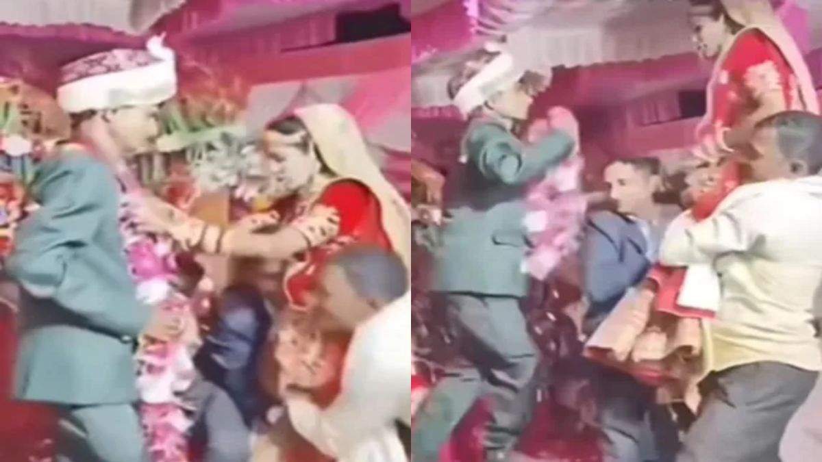 भारत में शादियों का माहौल कुछ ऐसा होता है जिसमें रंग-बिरंगी लाइट्स, हंसी-मजाक और ढेर सारी मस्ती और साथ ही साथ नाच-गाना। इन सभी चीजों को मिलाकर भारत में एक शादी संपन्न होती है। लेकिन जब जयमाला की बारी आती है तो एक और नौटंकी शुरू हो जाती है। जहां लोग जयमाला के वक्त दूल्हा और दुल्हन को गोद में उठा लेते हैं ताकि सामने वाले को जयमाला डालने में दिक्कत हो। ऐसा ही तमाशा सोशल मीडिया पर वायरल हो रही एक शादी में देखने को मिला। जिसे देखने के बाद लोग हंस-हंसकर लोटपोट हो गए।