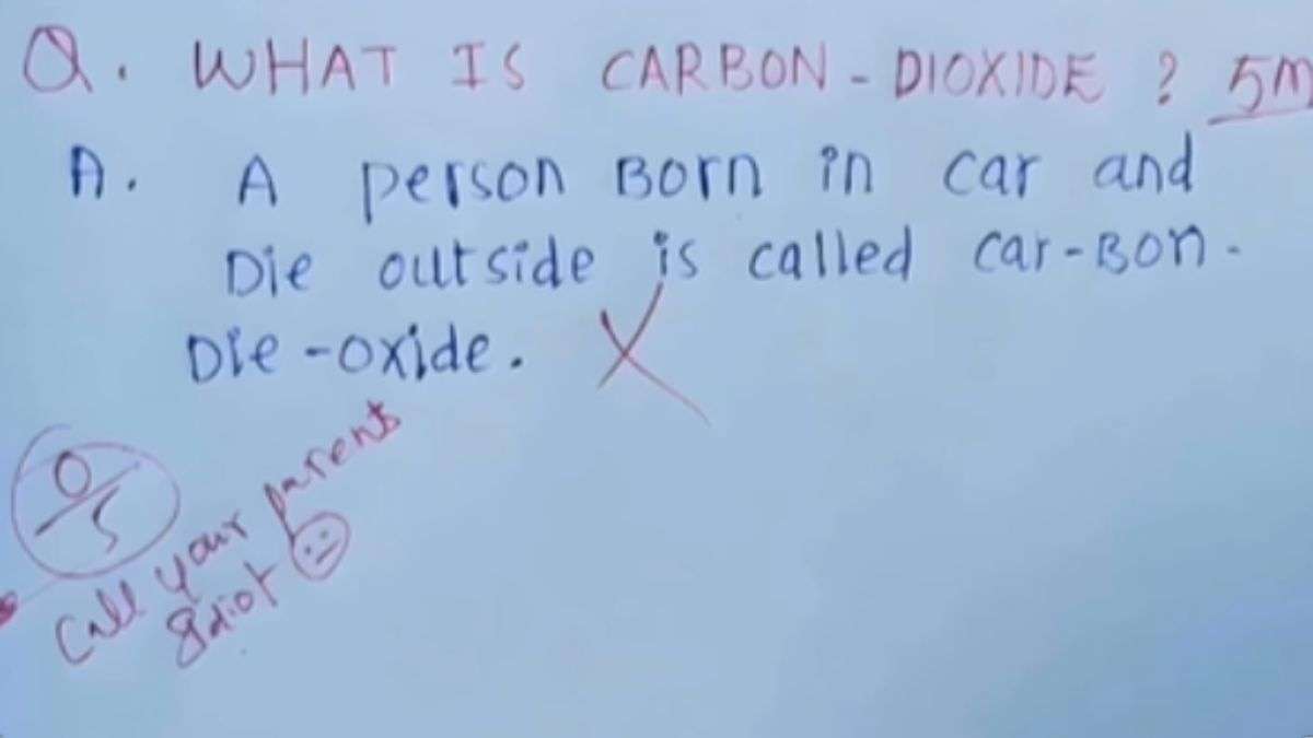 अभी जो फोटो वायरल हो रहा है उसमें नजर आता है कि उसमें एक सवाल और फिर उसका फनी जवाब लिखा हुआ है। सवाल यह है कि कार्बन डाईऑक्साइड क्या है? इसके जवाब में लिखा है, ‘एक आदमी जिसका जन्म कार के अंदर ‘Born in Car’ हुआ हो और वो मरा कार के बाहर ‘Die outside’ हो उसे ‘Car-Bon Die-Oxide’ कहते हैं।’ इस तरह यह फनी जवाब बनाया और लिखा गया जो सोशल मीडिया पर वायरल हो रहा है।