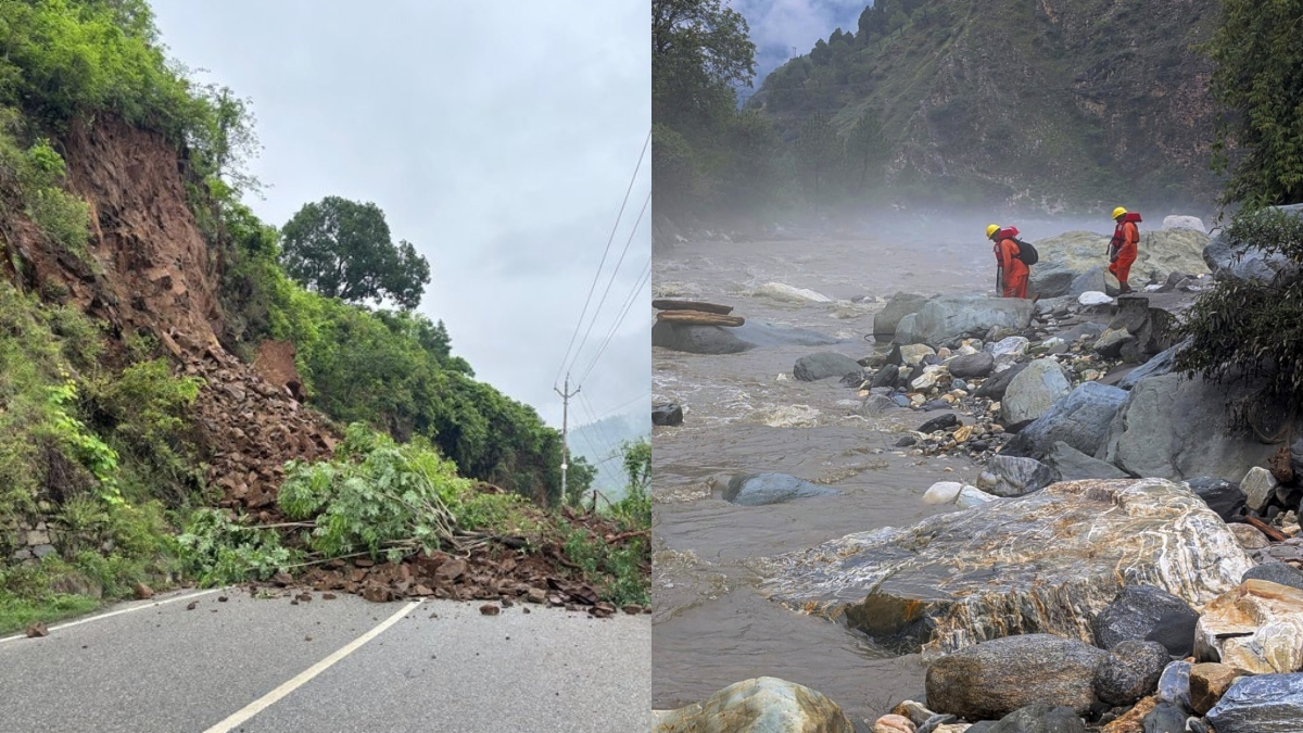 बद्रीनाथ हाईवे जाम (बाएं), कुल्ली में रेस्क्यू ऑपरेशन (बाएं)