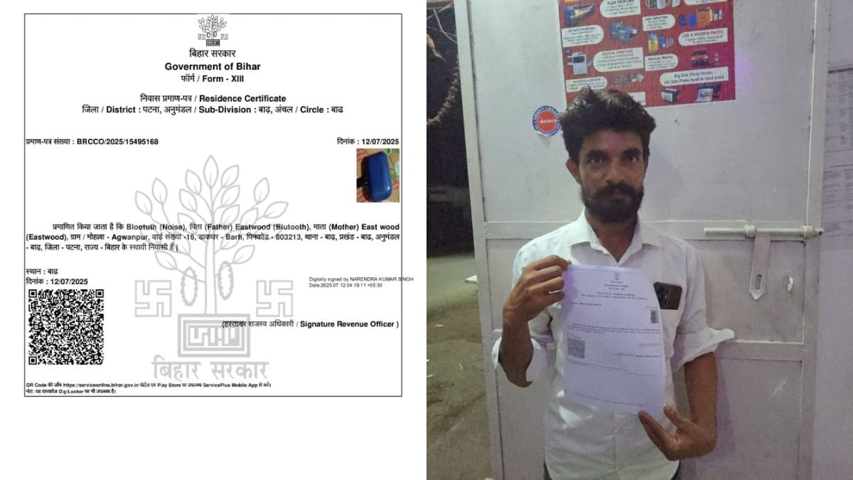 बिहार के बाढ़ अंचल कार्यालय से एक हैरान करने वाला मामला सामने आया है, जहां सरकारी लापरवाही की पोल खुलकर सामने आई। एक आवेदक ने निवास प्रमाण पत्र बनवाने के लिए आवेदन दिया, लेकिन कार्यालय ने न केवल प्रमाण पत्र में नाम के स्थान पर “ब्लूटूथ नॉइस” लिख दिया, बल्कि माता-पिता के नाम के कॉलम में “ईस्ट वुड” लिखकर भेज दिया और फोटो की जगह पर ब्लूटूथ डिवाइस की तस्वीर भी लगा दी गई। यह घटना अब सोशल मीडिया पर काफी तेजी से वायरल हो रही है।