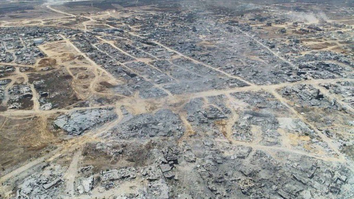 इजरायली हमले में पूरी तरह जमींदोज हुआ गाजा के बेत हनून शहर।