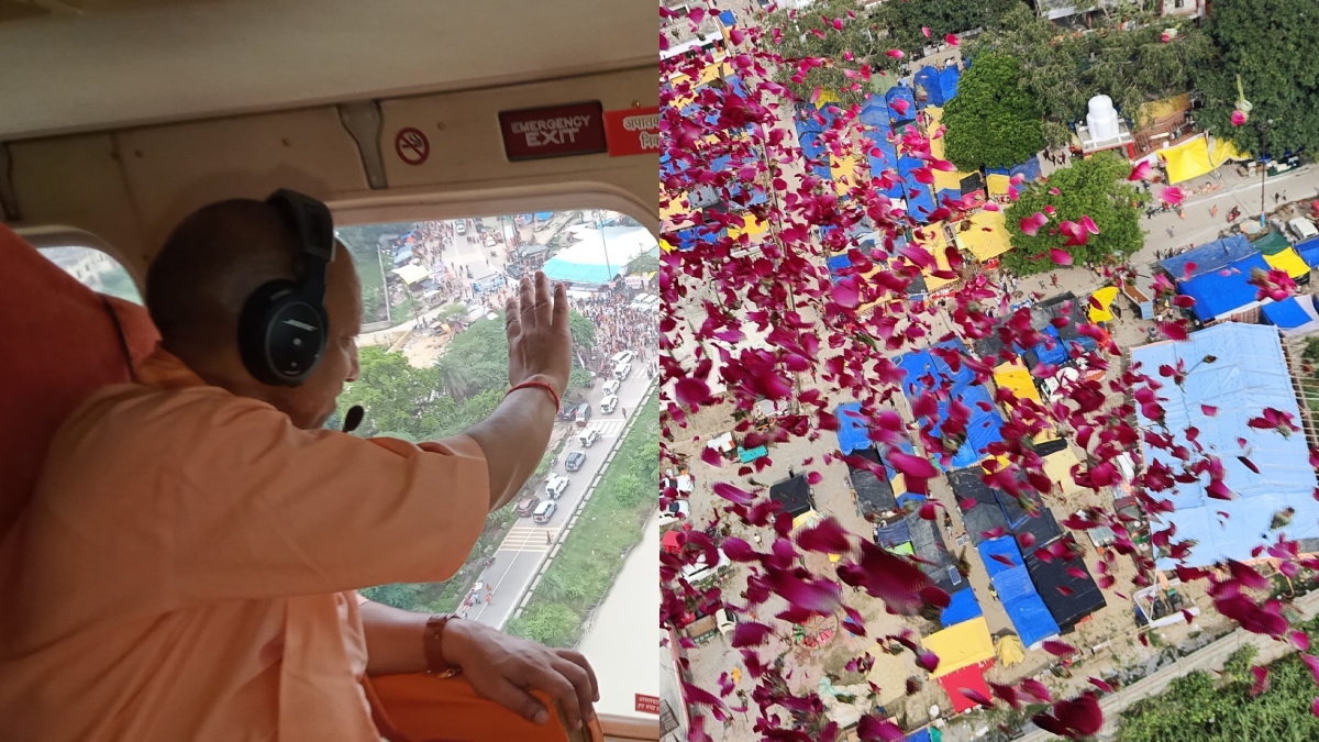 सीएम योगी ने कांवड़ियों पर बरसाए फूल