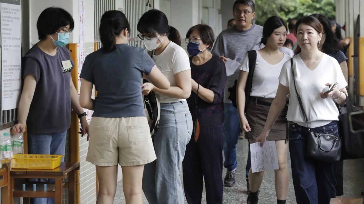 ताइवान में चीन समर्थक सांसदों को हटाने के लिए वोट करते लोग।